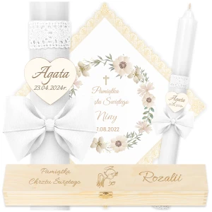 Ekskluzywny zestaw do chrztu - Świeca, Szatka i Pudełko C76S12P11/21