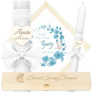 Ekskluzywny zestaw do chrztu - Świeca, Szatka i Pudełko C76S42P11/20