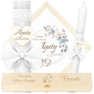 Ekskluzywny zestaw do chrztu - Świeca, Szatka i Pudełko C76S51P11/21