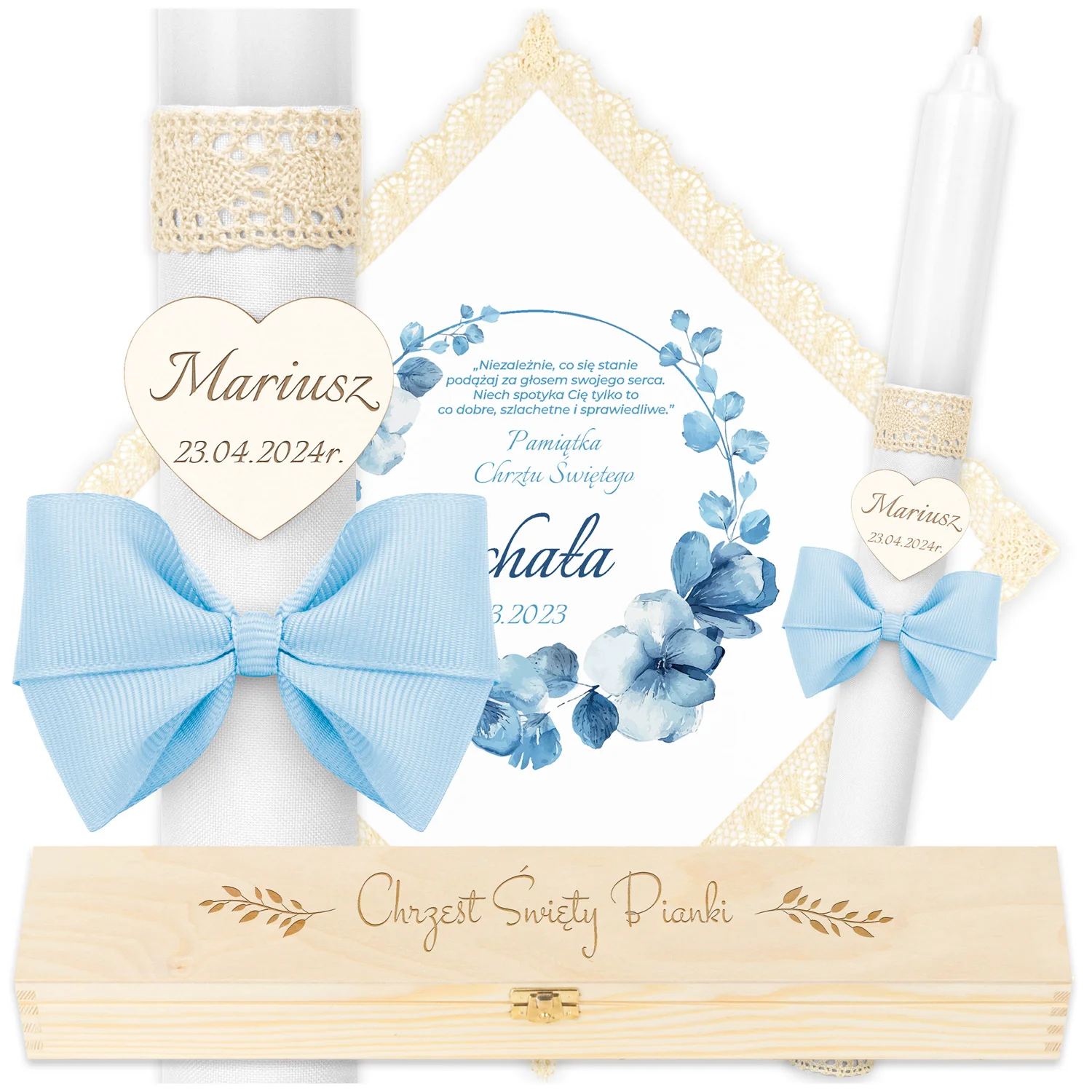 ✅ świeca na chrzest wraz z personalizacją (imieniem dziecka i datą chrztu),