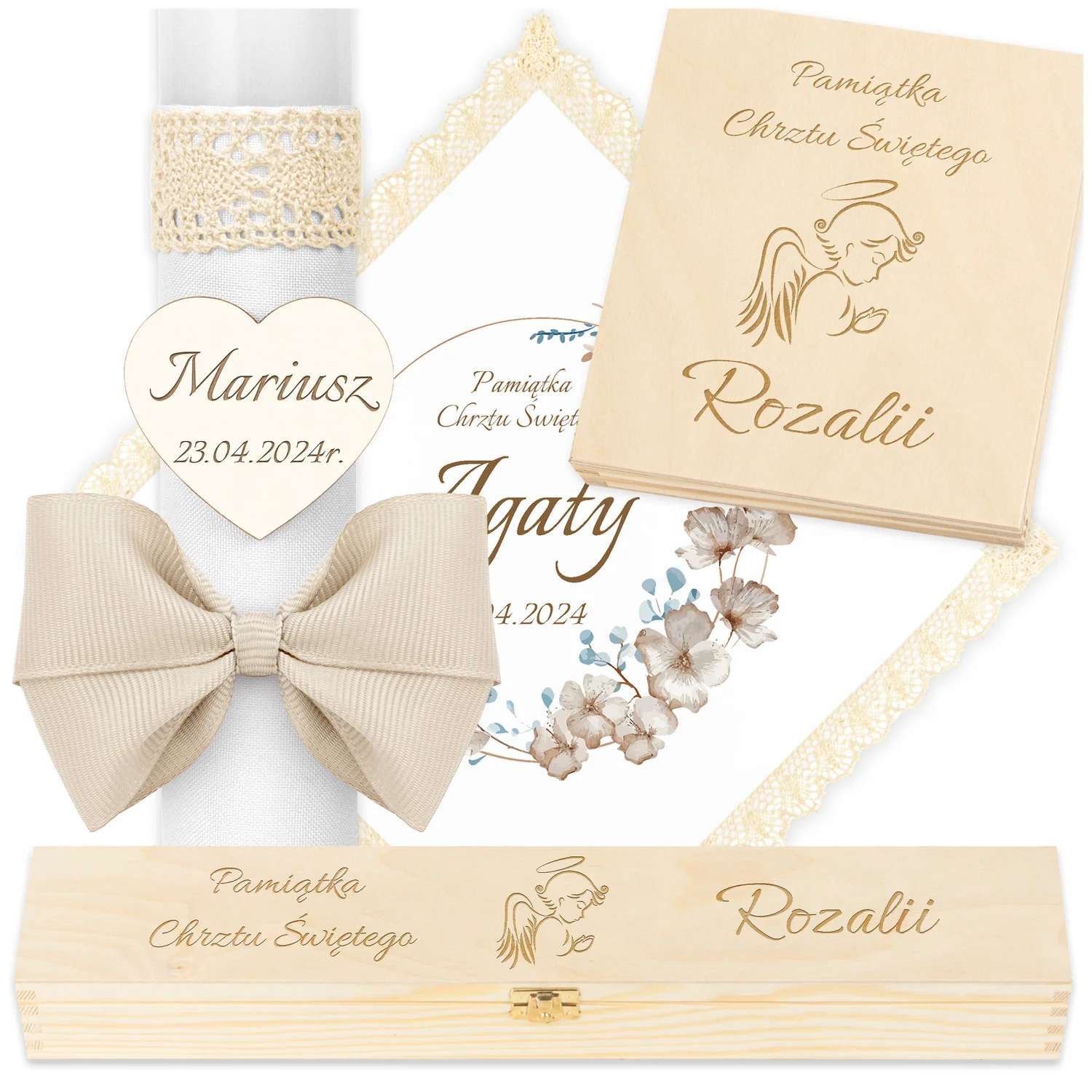 Świeca i Szatka na chrzest + 2 Pudełka do Chrztu C71S53P11/21SZ14