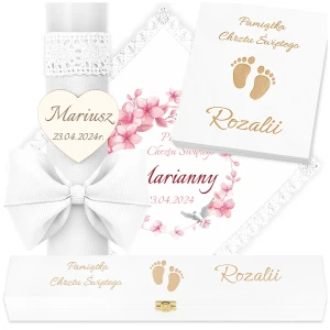 Świeca i szatka do chrztu dla dziewczynki, 2 Pudełka na Chrzest C76SB44P13/11SZB3