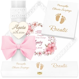 Świeca i szatka do chrztu dla dziewczynki, 2 Pudełka na Chrzest C77SB46P13/11SZB3
