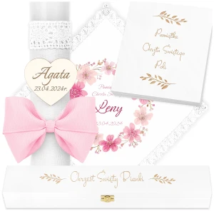 Zestaw dla Dziewczynki Świeca i Szatka do chrztu - 2 pudełka C77SB45P13/9SZB1