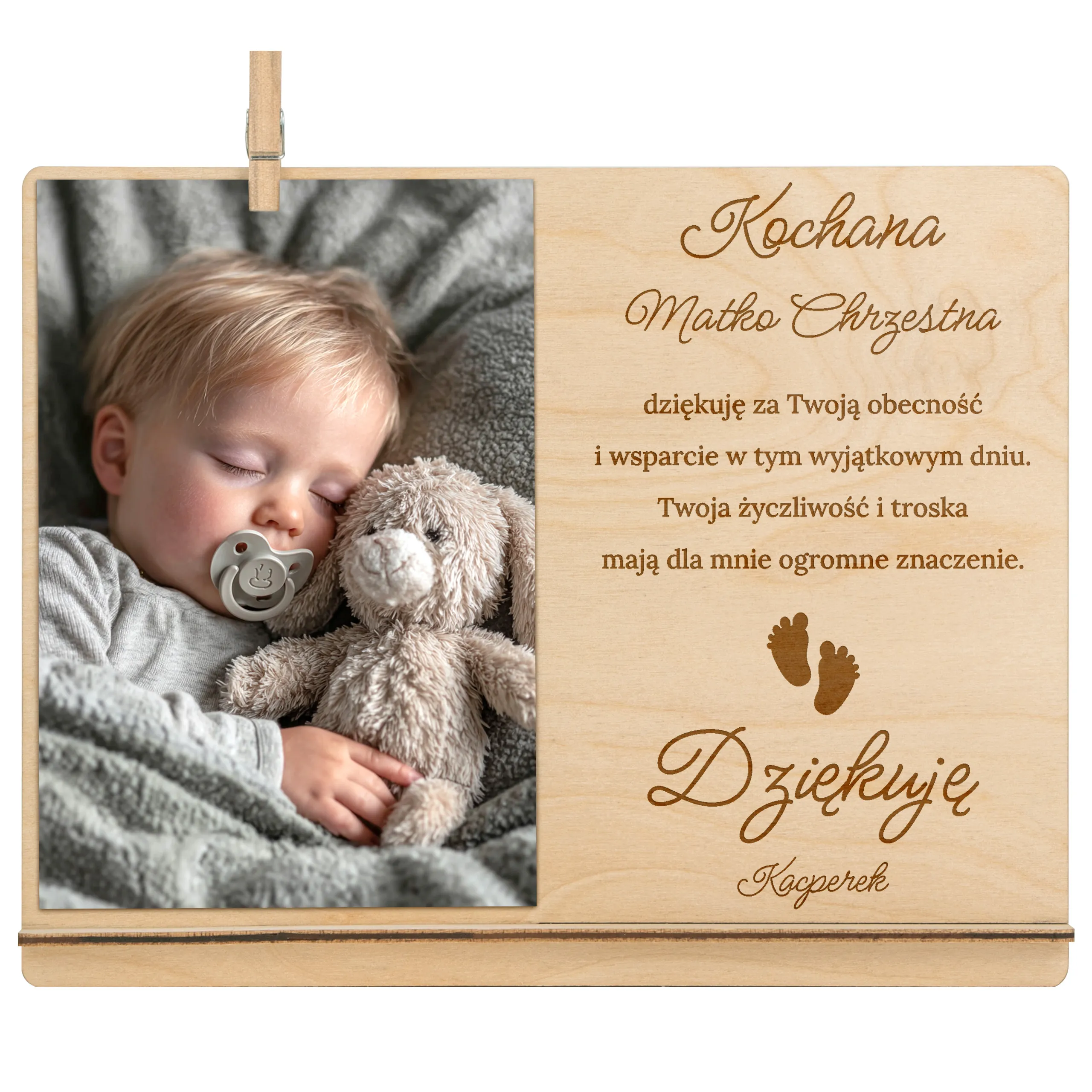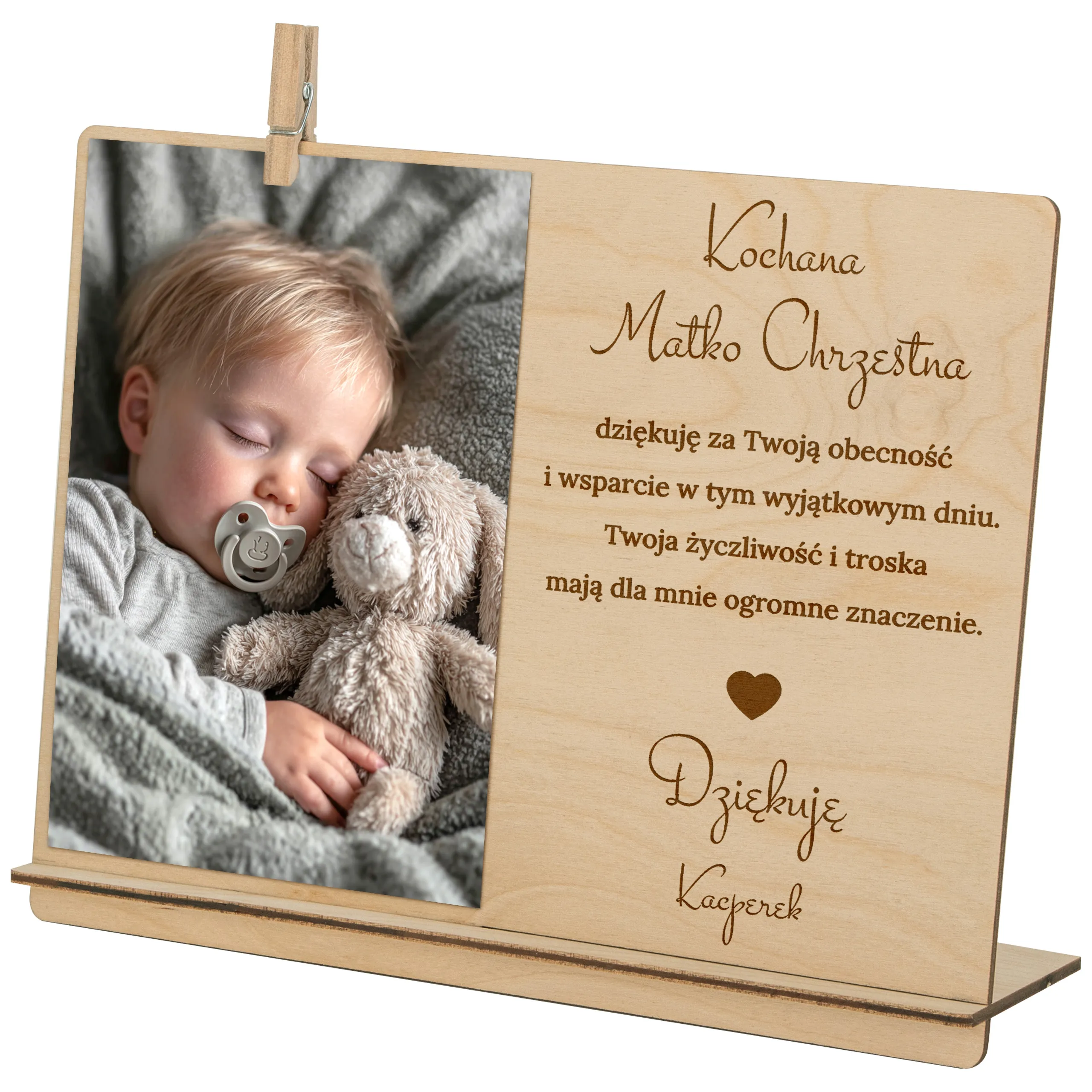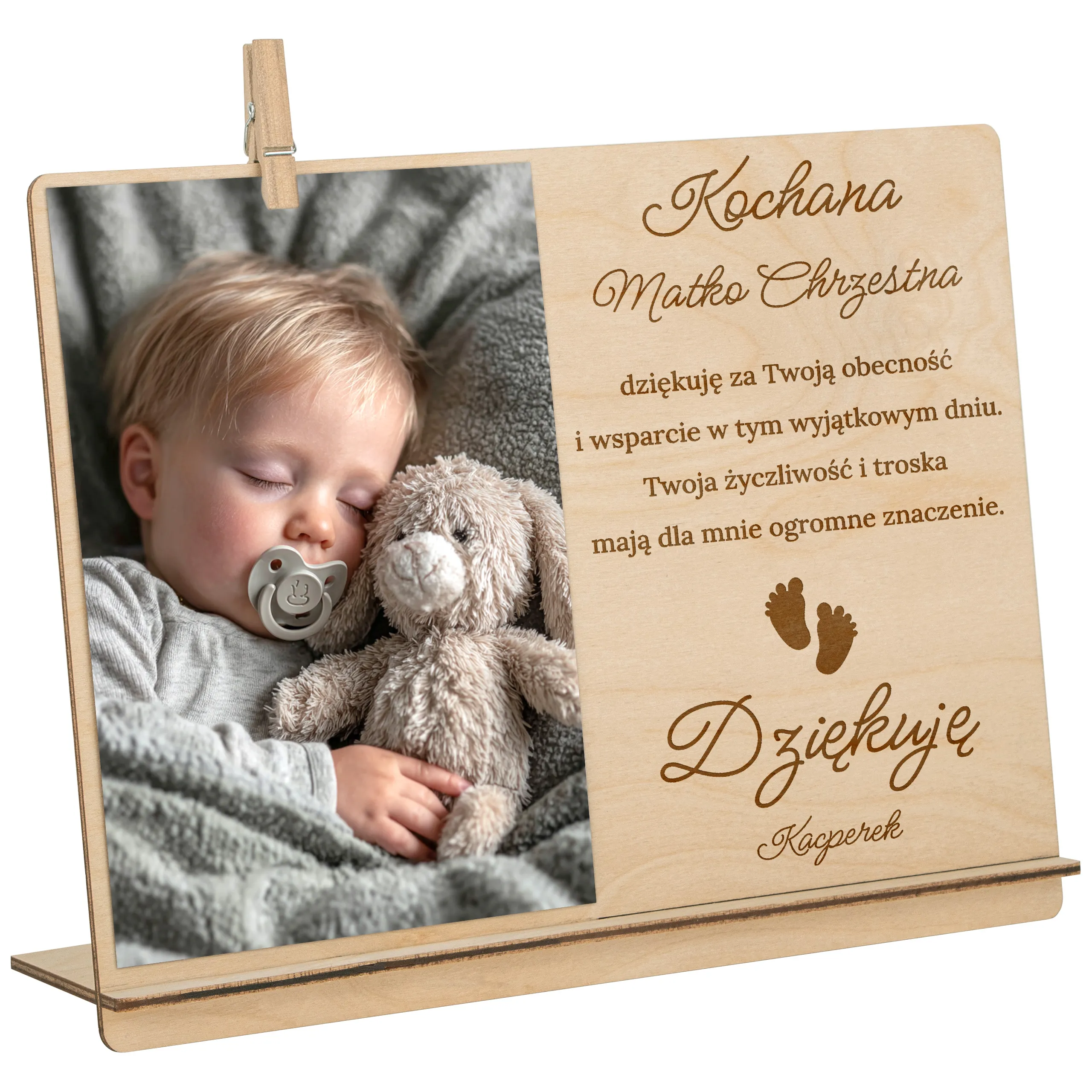 Drewniana ramka ze zdjęciem Podziękowanie dla Chrzestnych 1M