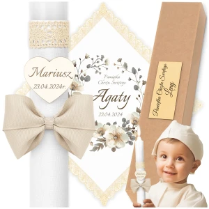 Ekskluzywny zestaw do chrztu - Świeca, Szatka i Pudełko C71S54P17