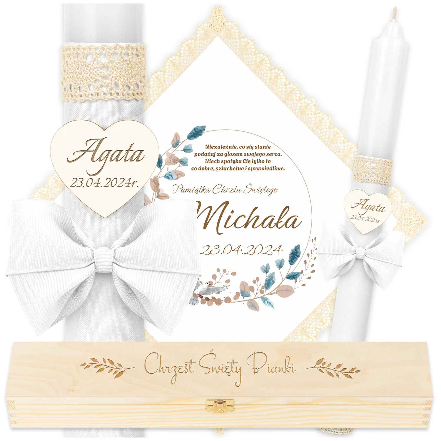 Ekskluzywny zestaw do chrztu - Świeca, Szatka i Pudełko C72S52P11/9