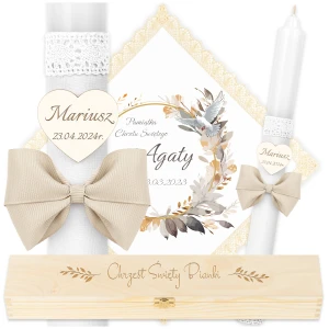 Ekskluzywny zestaw do chrztu - Świeca, Szatka i Pudełko C75S25P11/9