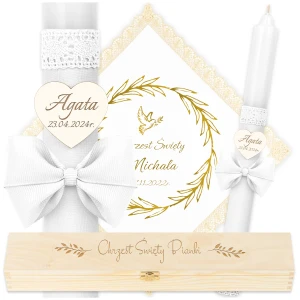 Ekskluzywny zestaw do chrztu - Świeca, Szatka i Pudełko C76S22P11/9