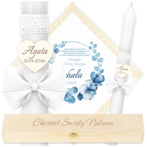 Ekskluzywny zestaw do chrztu - Świeca, Szatka i Pudełko C76S43P11/10