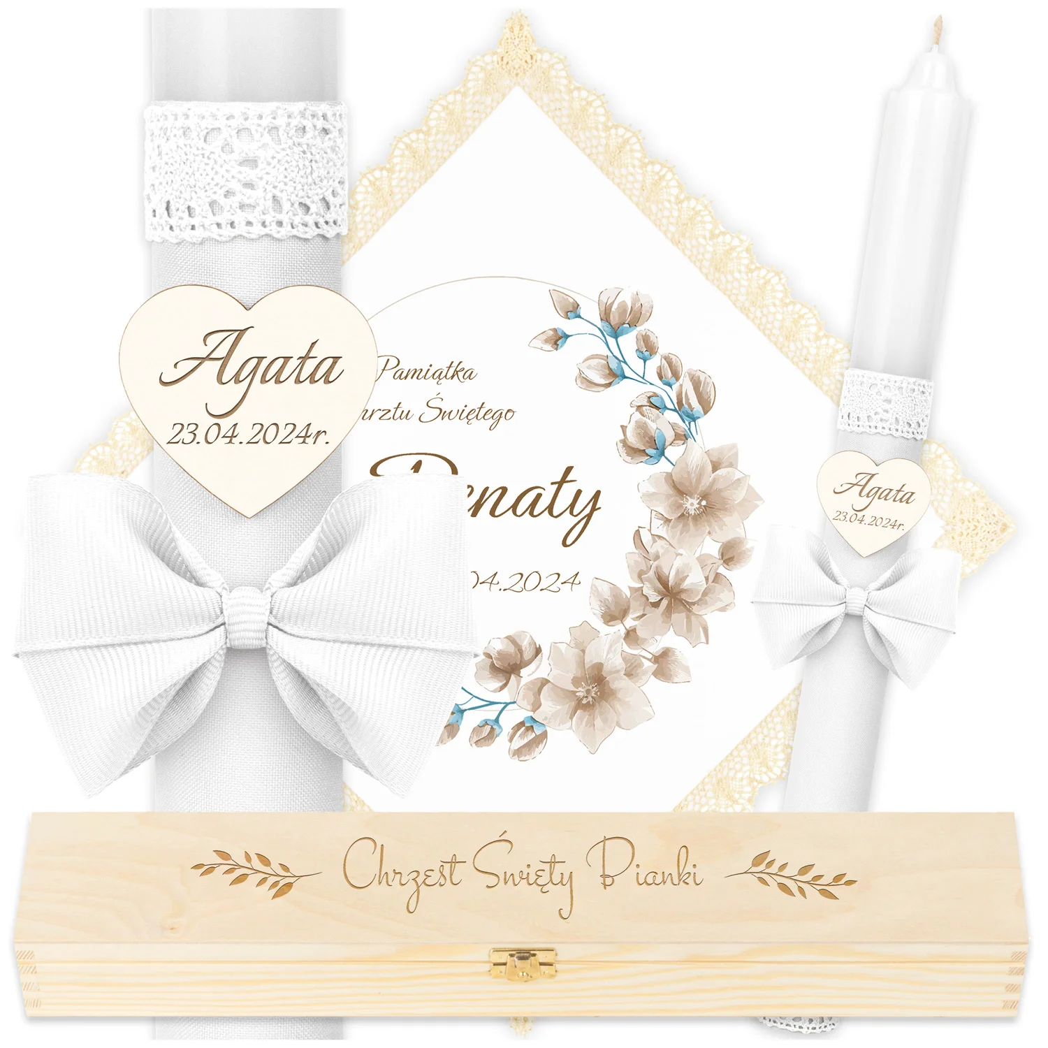 Ekskluzywny zestaw do chrztu - Świeca, Szatka i Pudełko C76S50P11/9