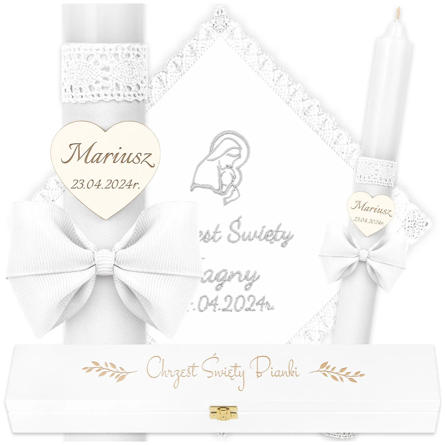 Ekskluzywny zestaw do chrztu - Świeca, Szatka i Pudełko C76SBH2P13/9
