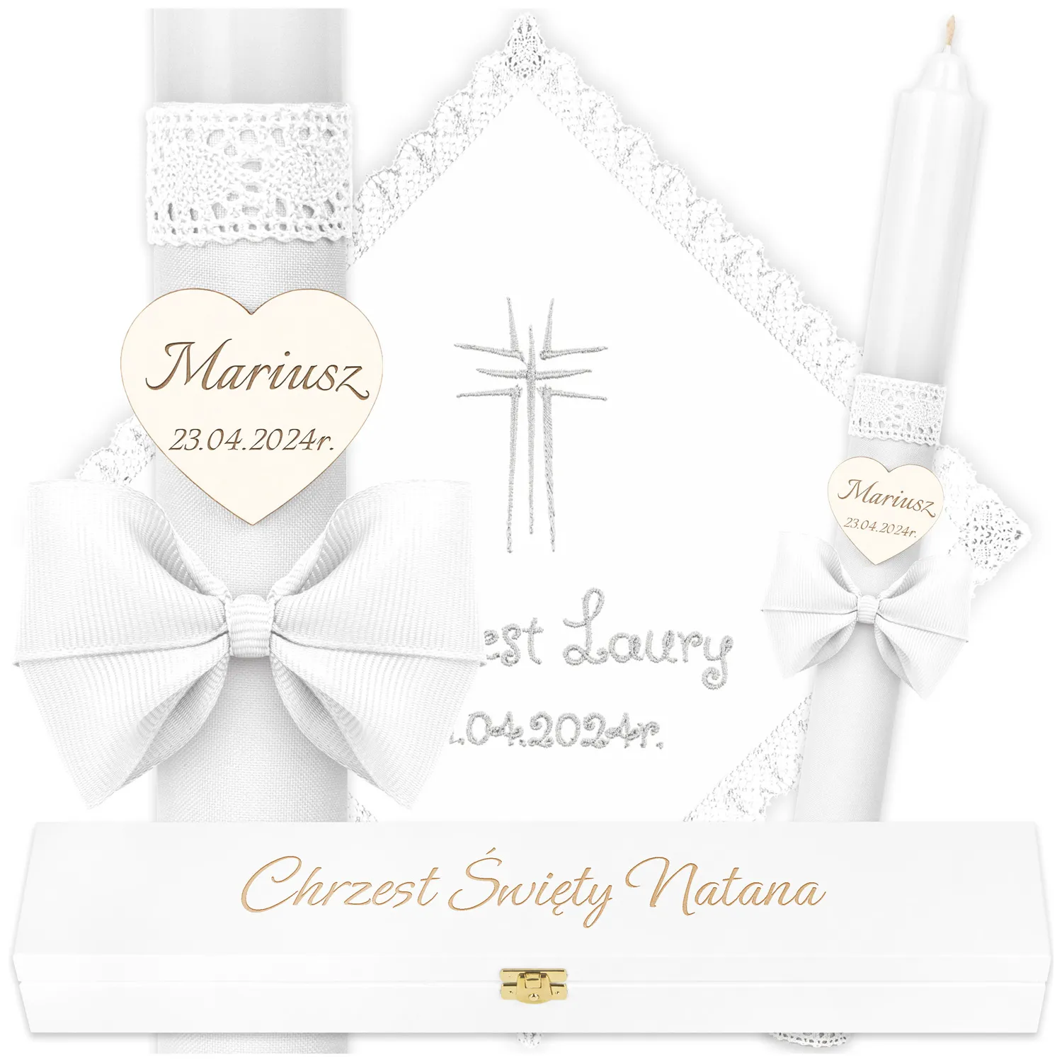 Ekskluzywny zestaw do chrztu - Świeca, Szatka i Pudełko C76SBH5P13/10