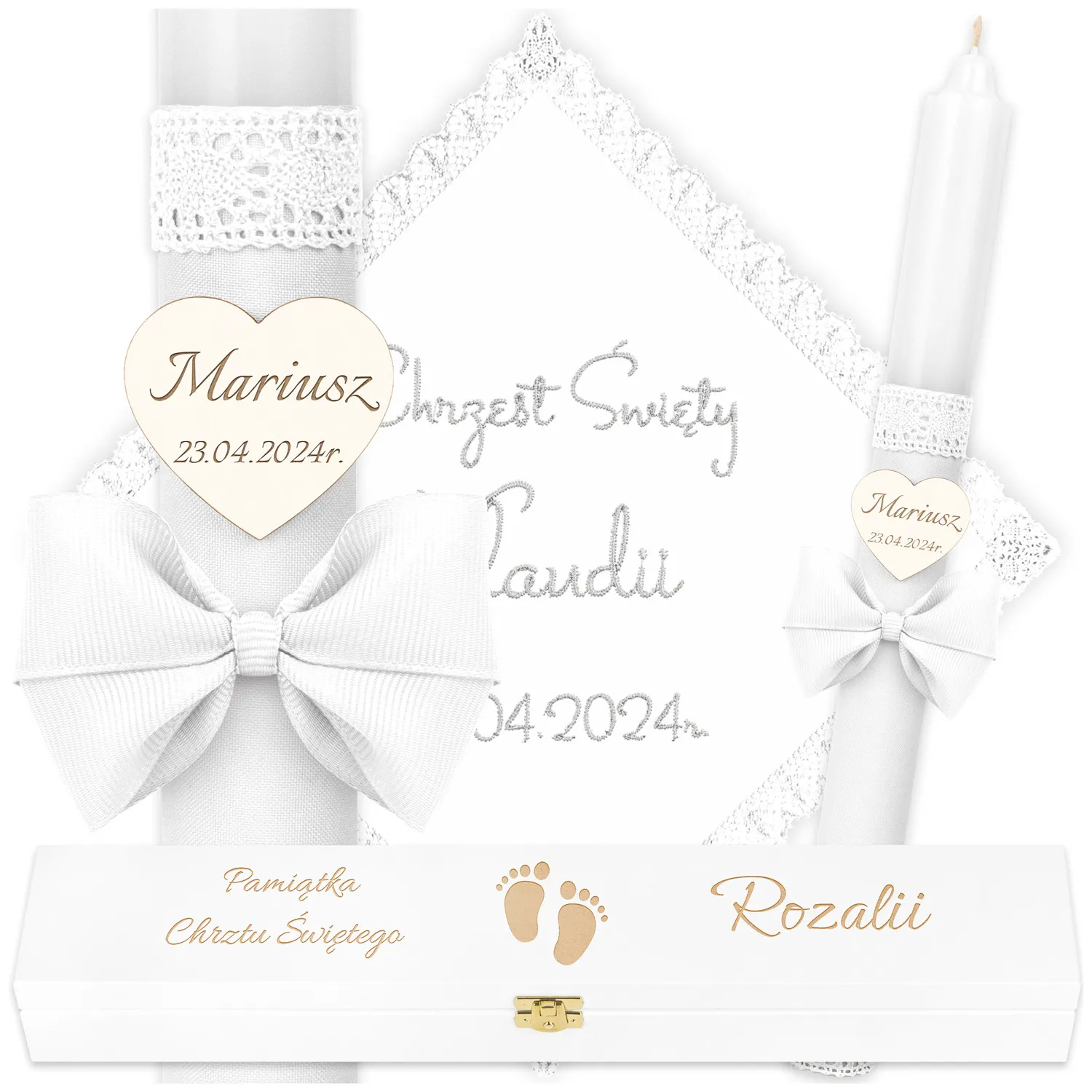 Ekskluzywny zestaw do chrztu - Świeca, Szatka i Pudełko C76SBH8P13/11