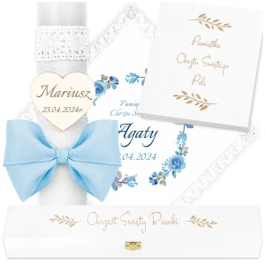Ekskluzywny zestaw do chrztu dla Chłopca - Świeca, Szatka i 2 Pudełka C78SB39P13/9SZB1