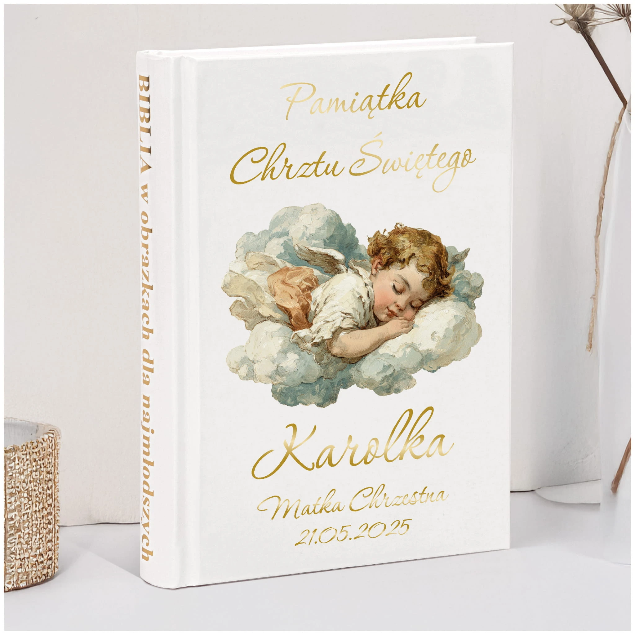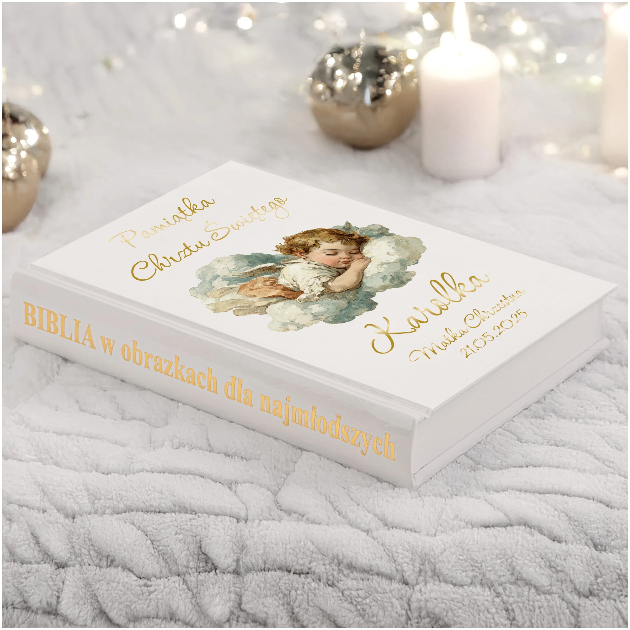 PAMIĄTKA CHRZTU ŚWIĘTEGO BIBLIA NA CHRZEST PREZENT - NIEODPŁATNA PERSONALIZACJA