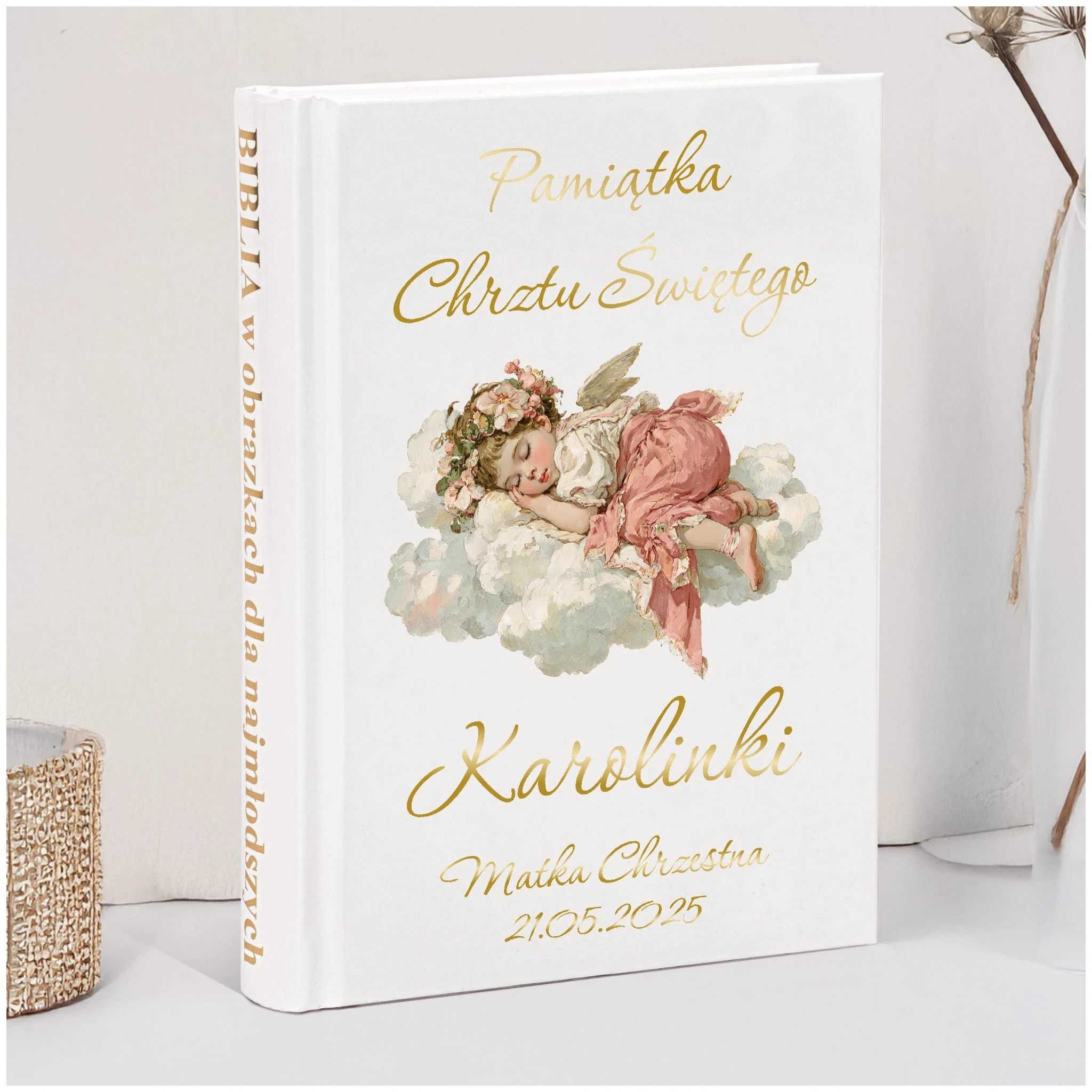 PAMIĄTKA CHRZTU ŚWIĘTEGO BIBLIA NA CHRZEST PREZENT - NIEODPŁATNA PERSONALIZACJA