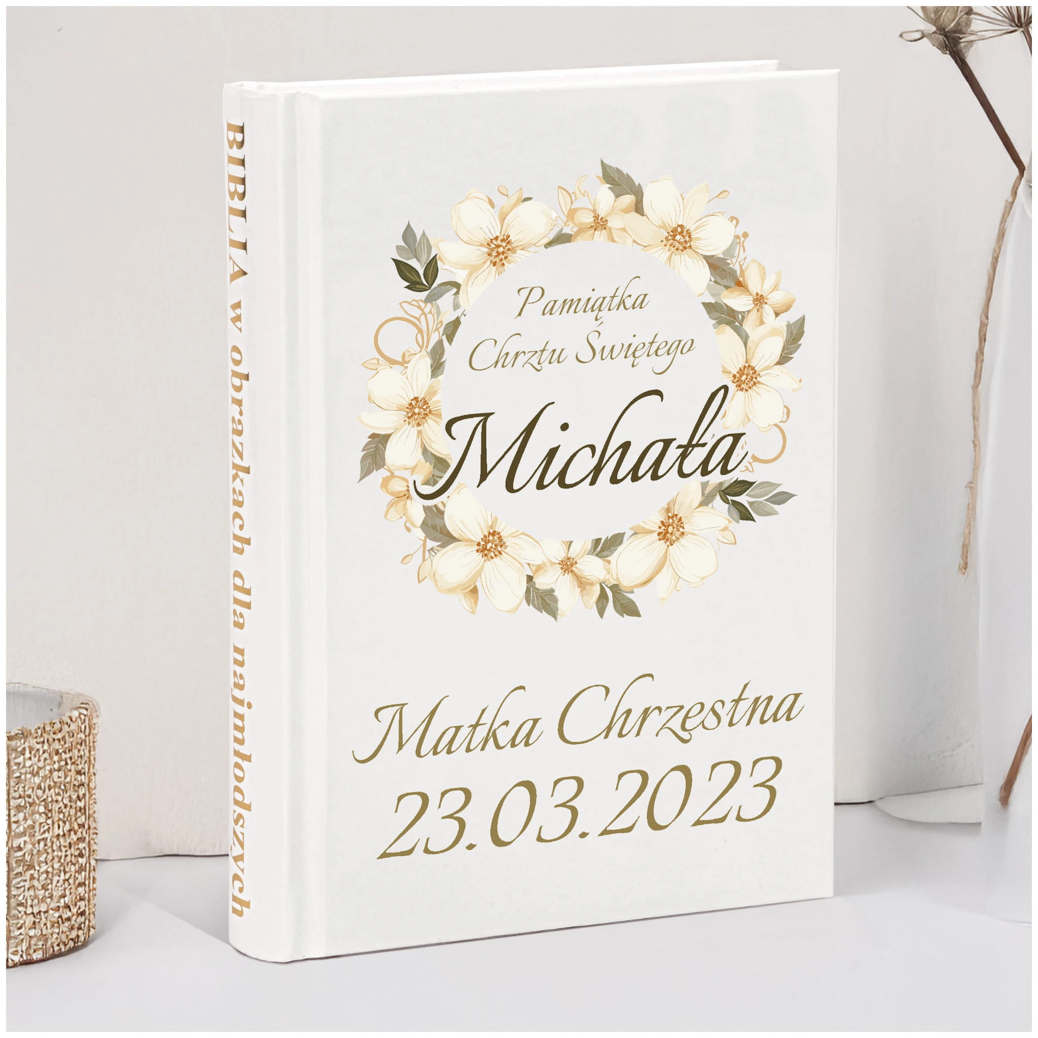 PAMIĄTKA CHRZTU ŚWIĘTEGO BIBLIA NA CHRZEST PREZENT - NIEODPŁATNA PERSONALIZACJA