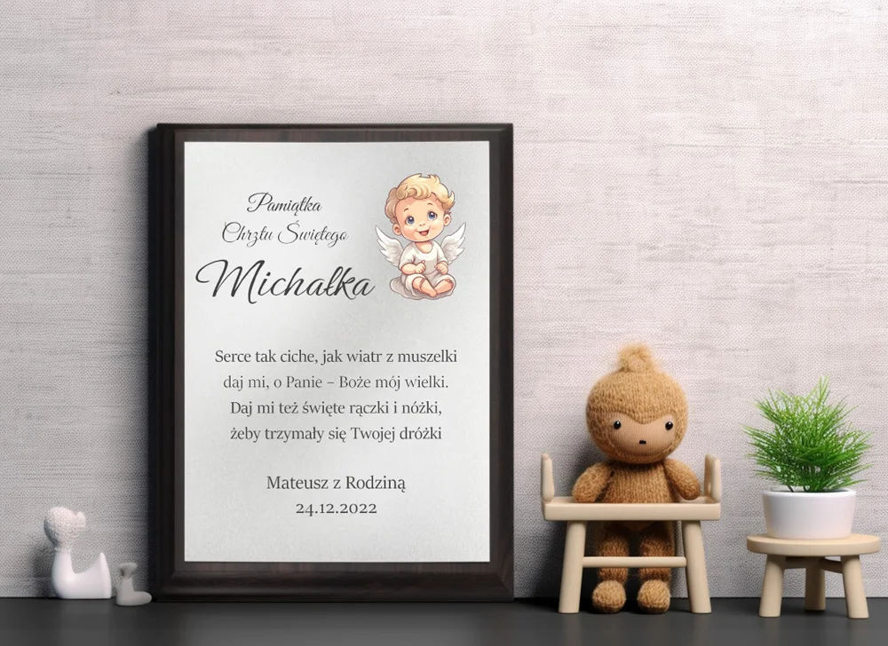 Obrazek z Aniołkiem - Pamiątka Chrztu Świętego jest idealnym sposobem na upamiętnienie Chrztu Świętego.