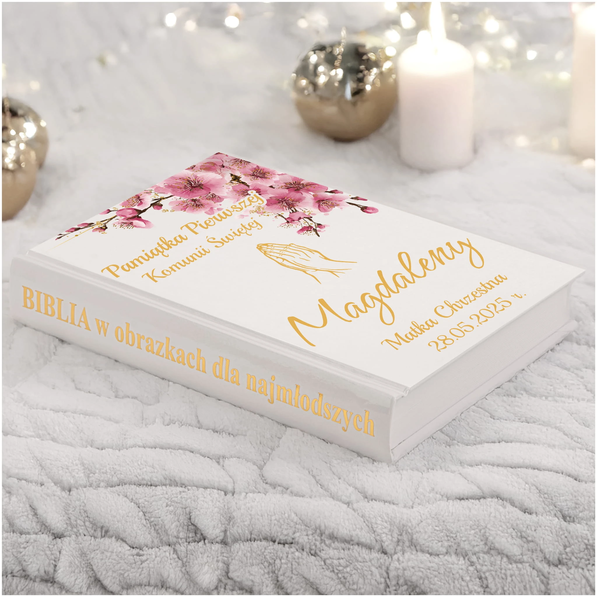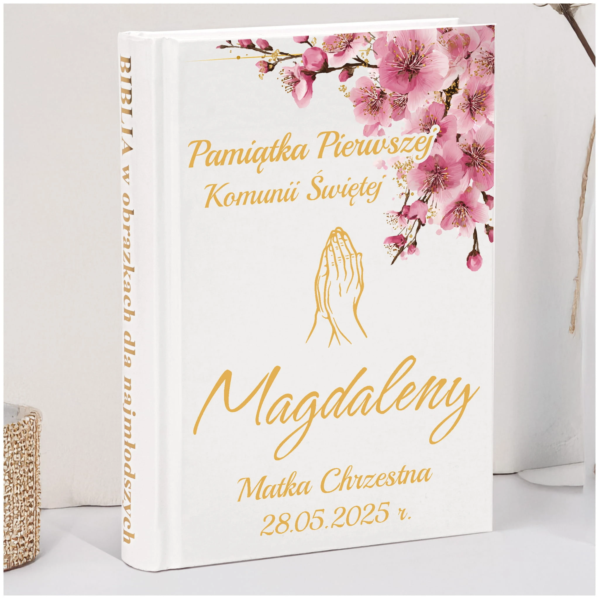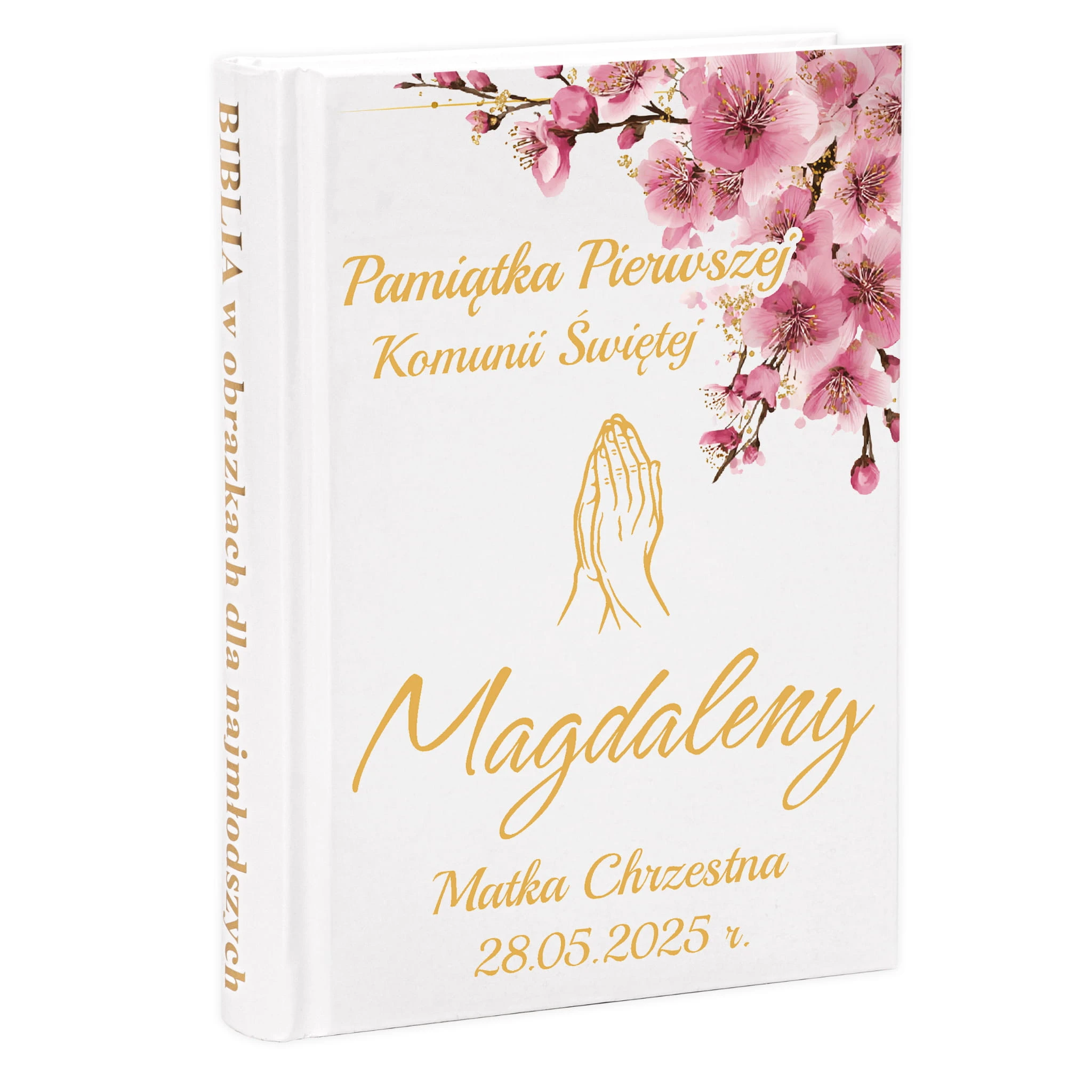 PAMIĄTKA PIERWSZEJ KOMUNII ŚWIĘTEJ BIBLIA NA KOMUNIE PREZENT - NIEODPŁATNA PERSONALIZACJA