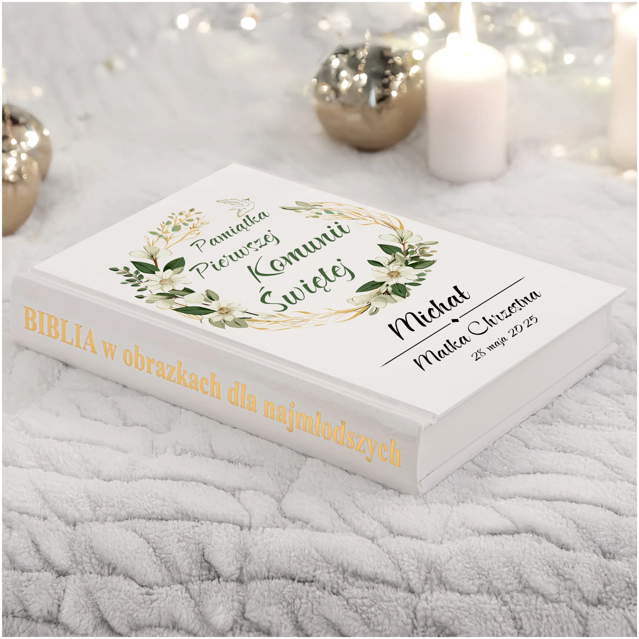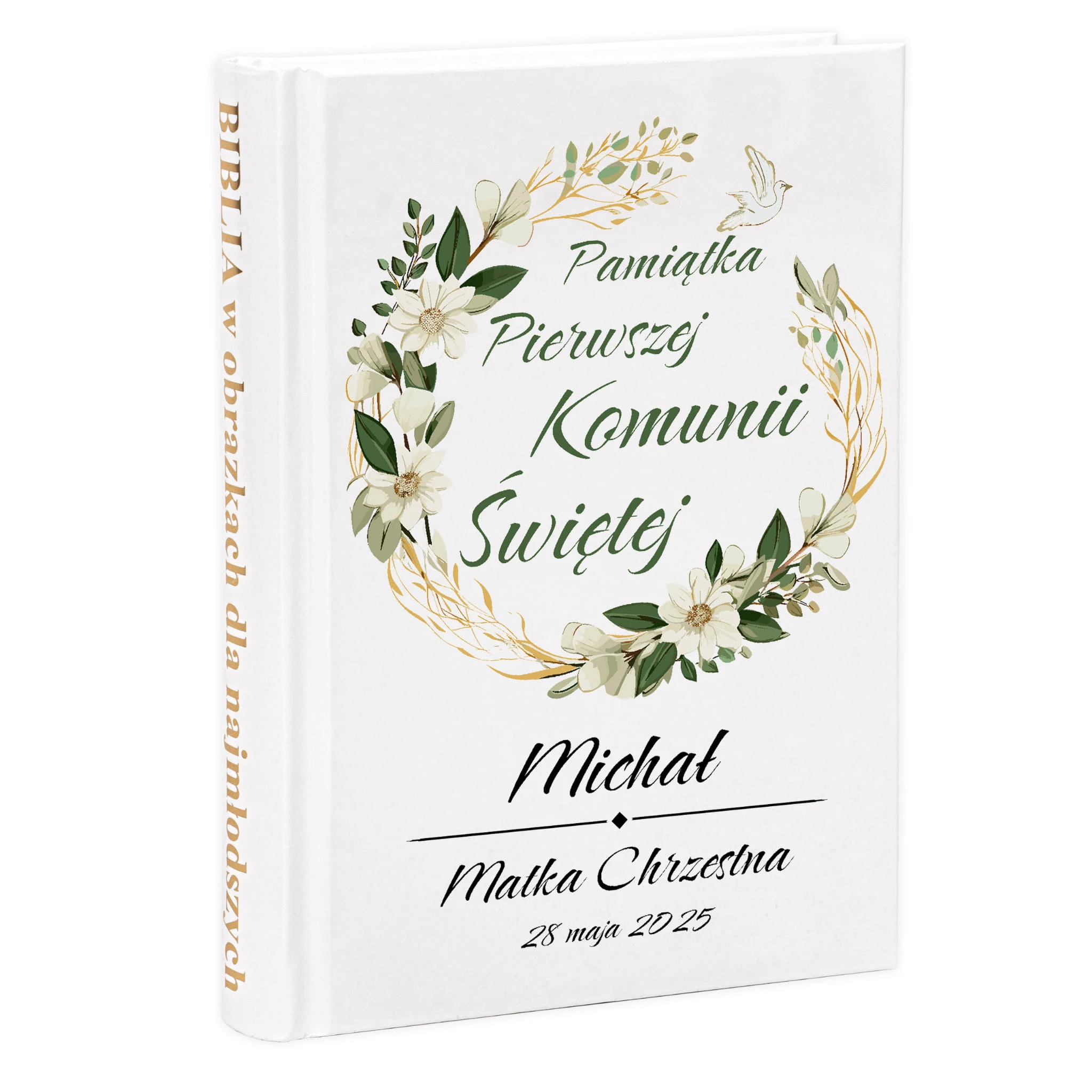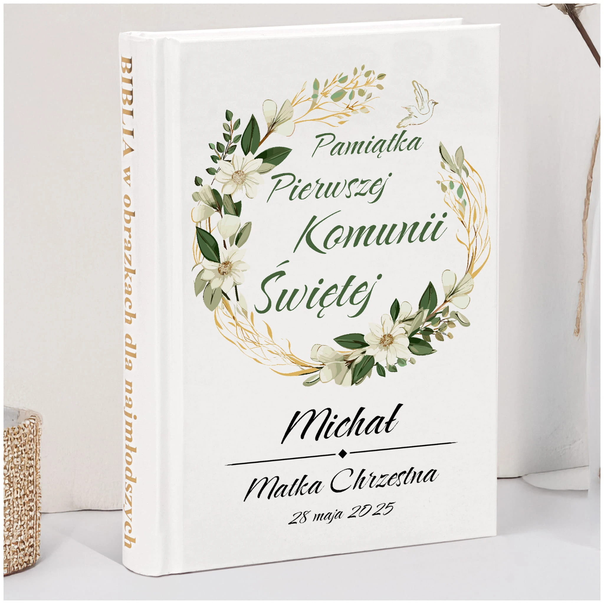 PAMIĄTKA PIERWSZEJ KOMUNII ŚWIĘTEJ BIBLIA NA KOMUNIE PREZENT - NIEODPŁATNA PERSONALIZACJA