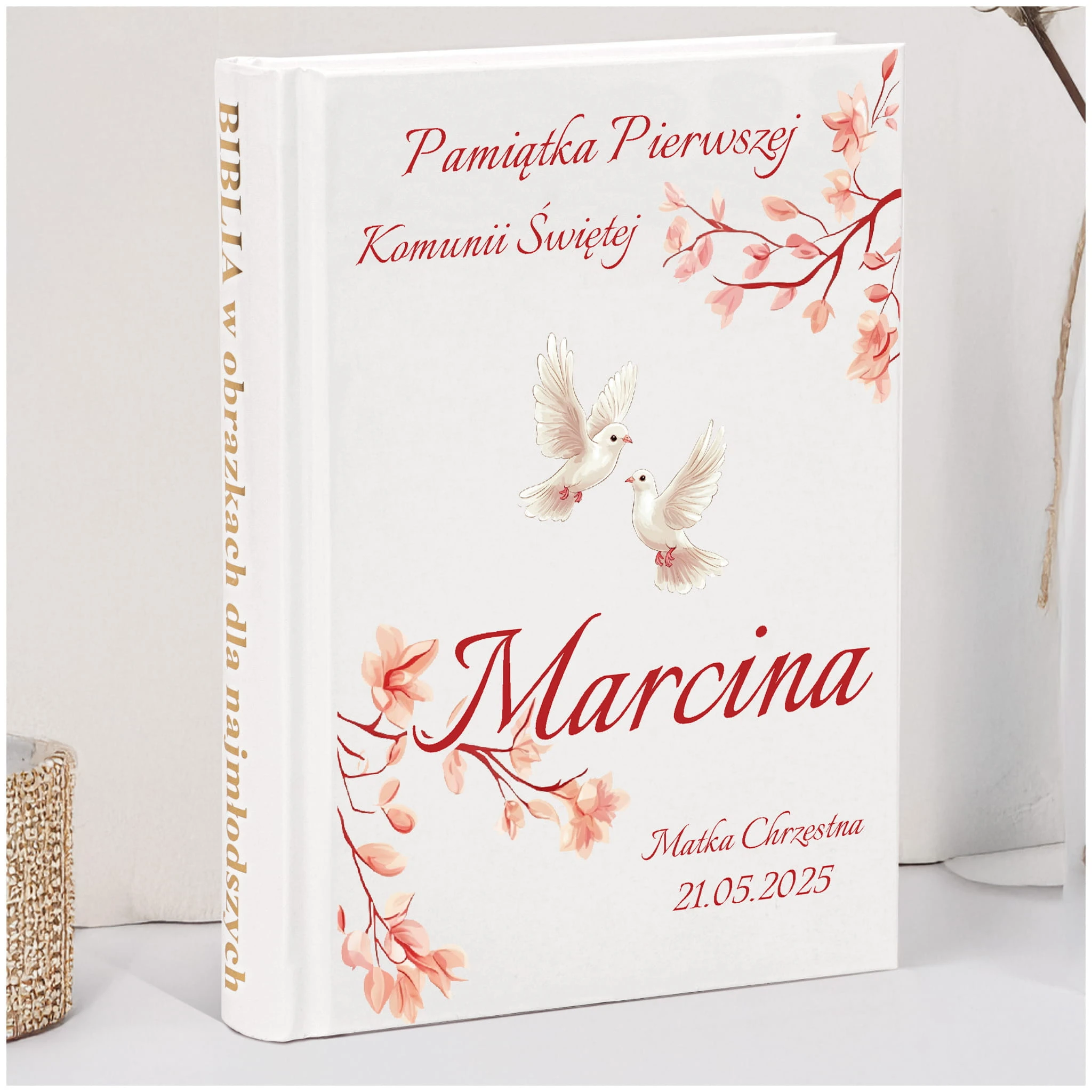 PAMIĄTKA PIERWSZEJ KOMUNII ŚWIĘTEJ BIBLIA NA KOMUNIE PREZENT - NIEODPŁATNA PERSONALIZACJA
