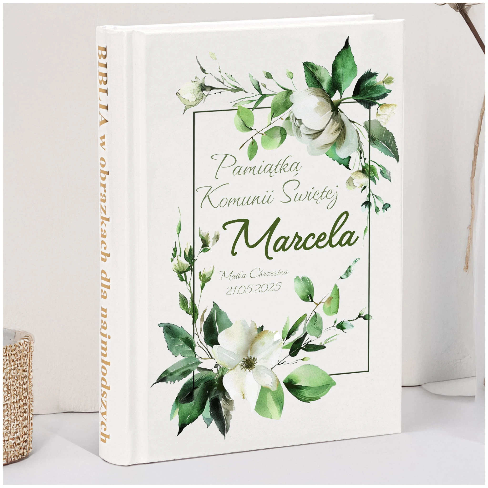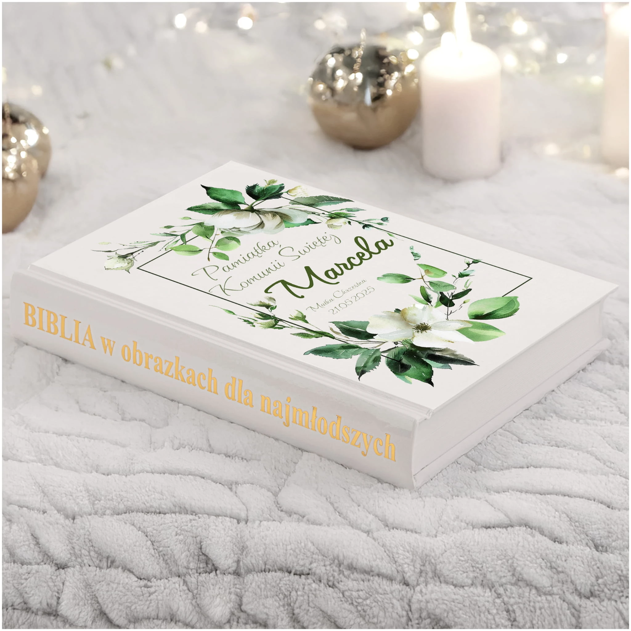 PAMIĄTKA PIERWSZEJ KOMUNII ŚWIĘTEJ BIBLIA NA KOMUNIE PREZENT - NIEODPŁATNA PERSONALIZACJA