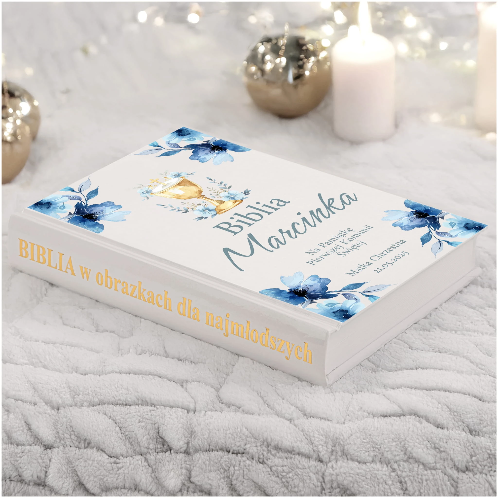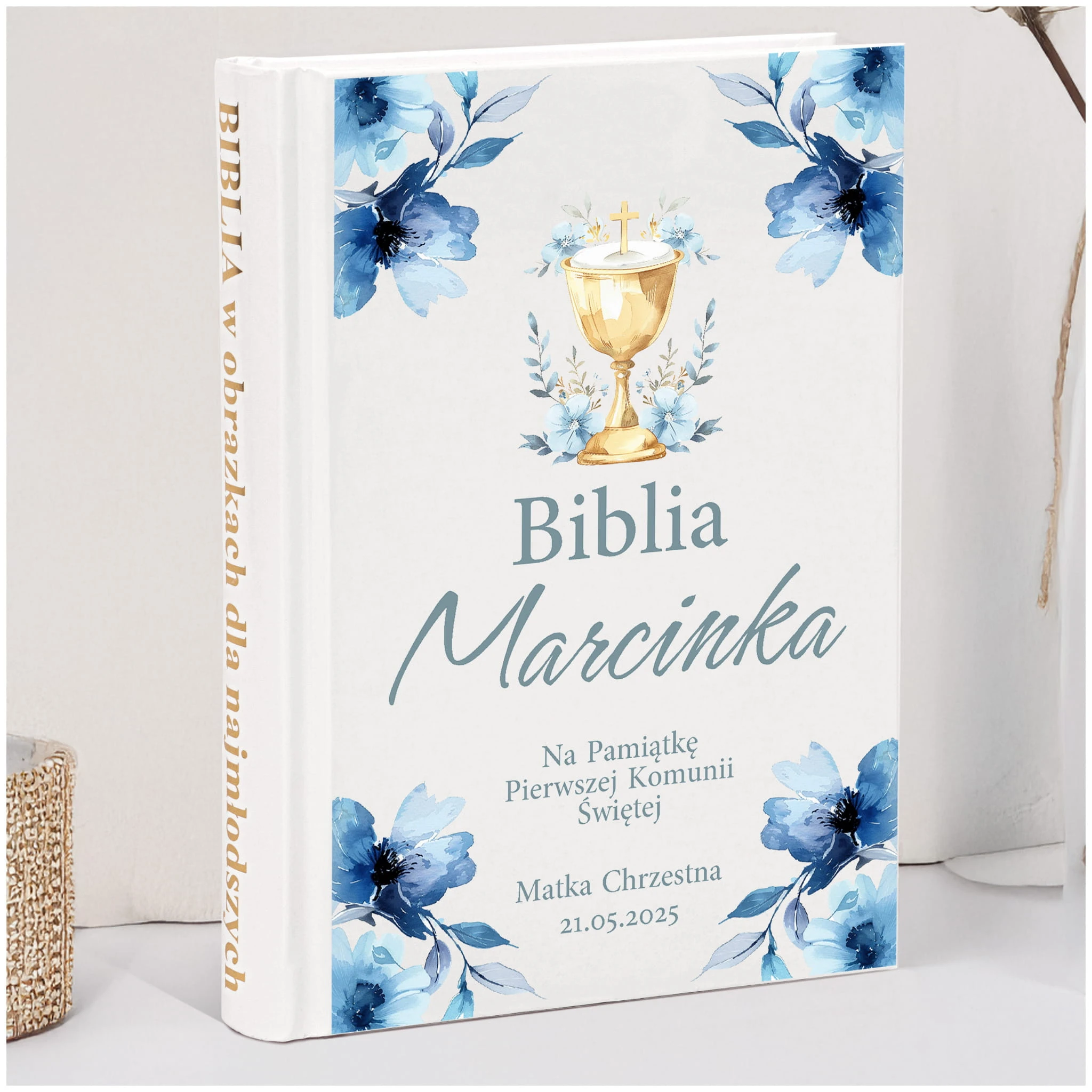 PAMIĄTKA PIERWSZEJ KOMUNII ŚWIĘTEJ BIBLIA NA KOMUNIE PREZENT - NIEODPŁATNA PERSONALIZACJA