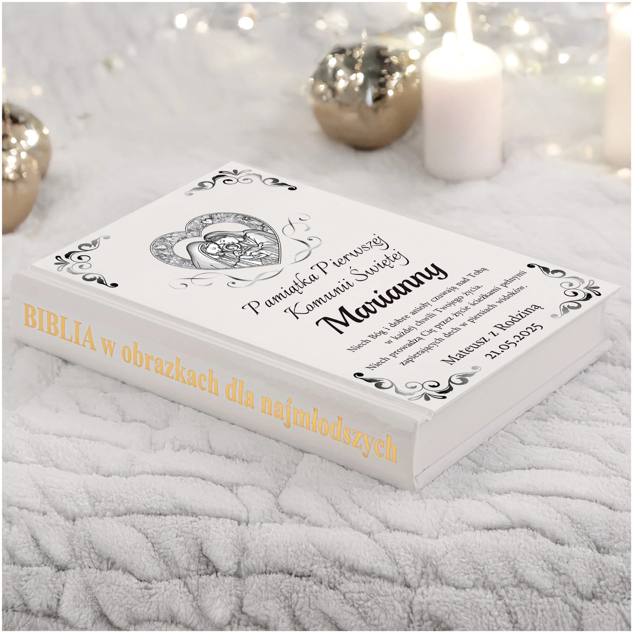 PAMIĄTKA PIERWSZEJ KOMUNII ŚWIĘTEJ BIBLIA NA KOMUNIE PREZENT - NIEODPŁATNA PERSONALIZACJA