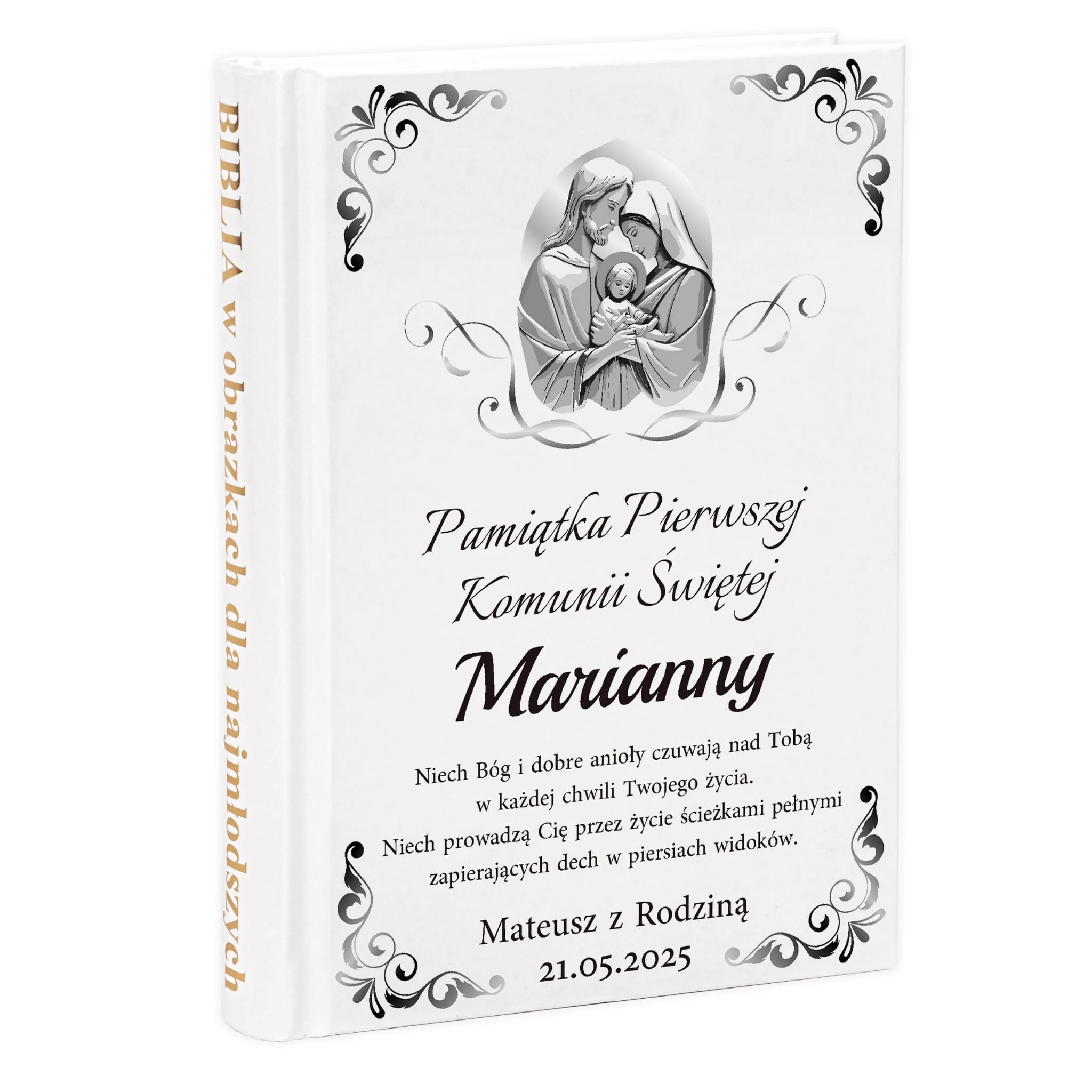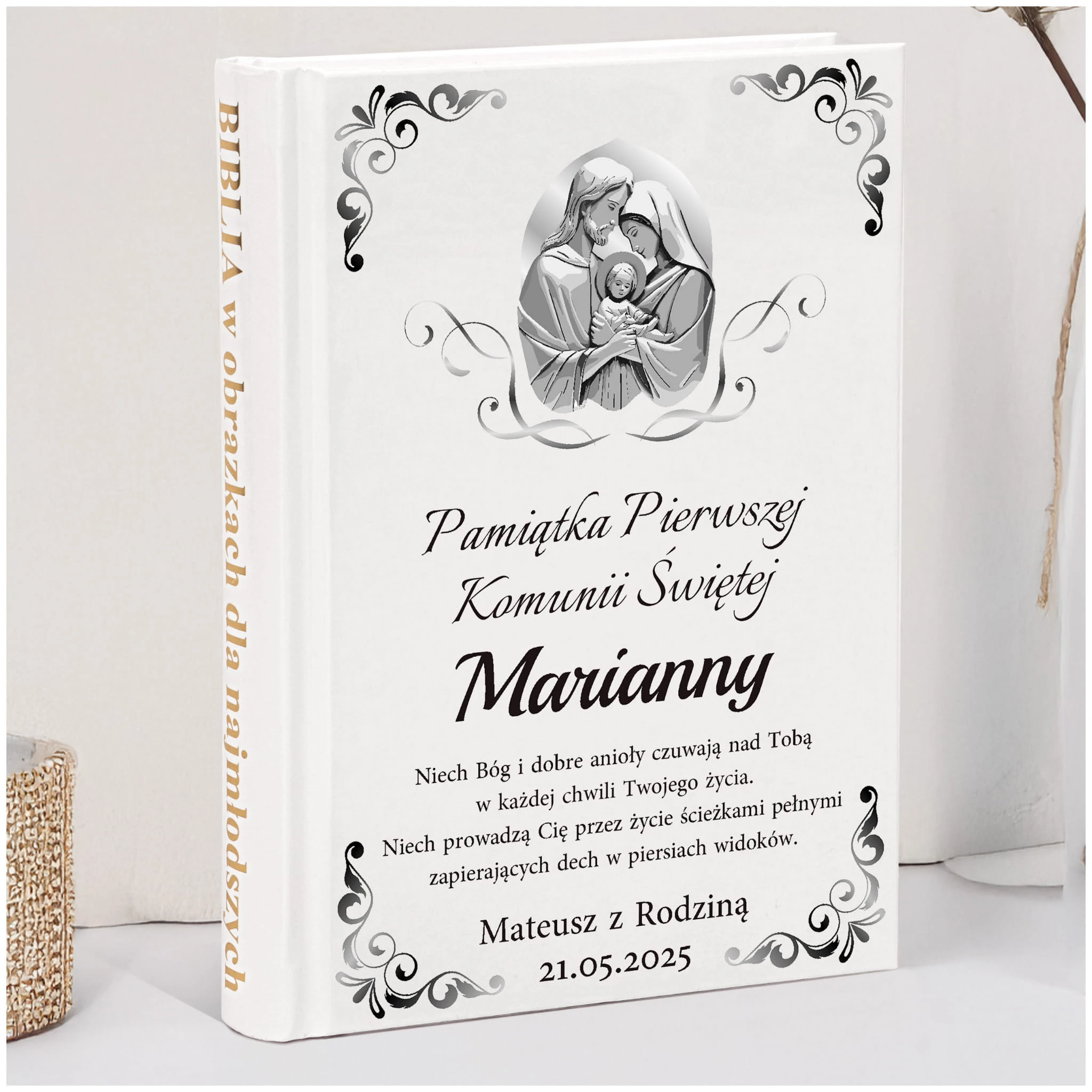 PAMIĄTKA PIERWSZEJ KOMUNII ŚWIĘTEJ BIBLIA NA KOMUNIE PREZENT - NIEODPŁATNA PERSONALIZACJA