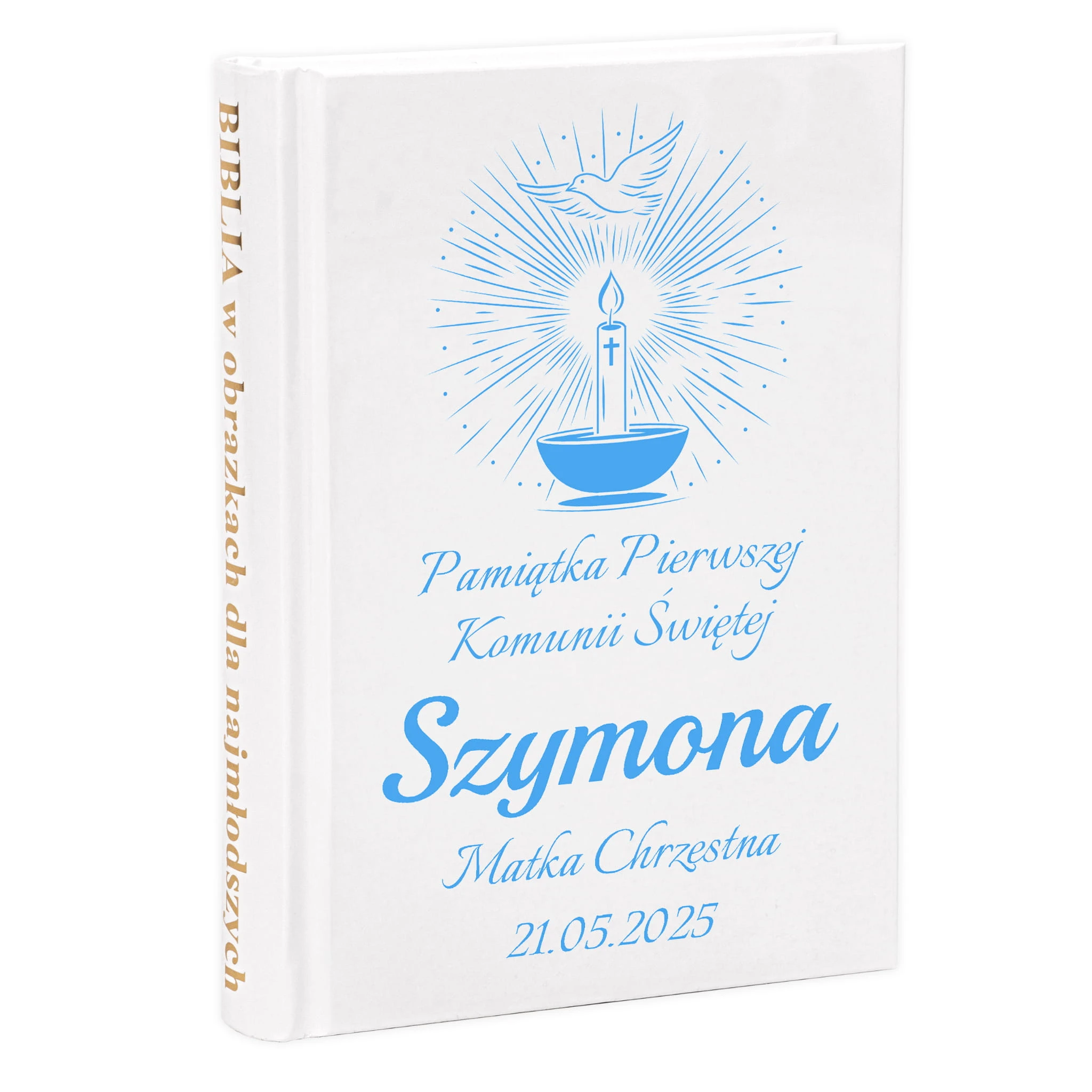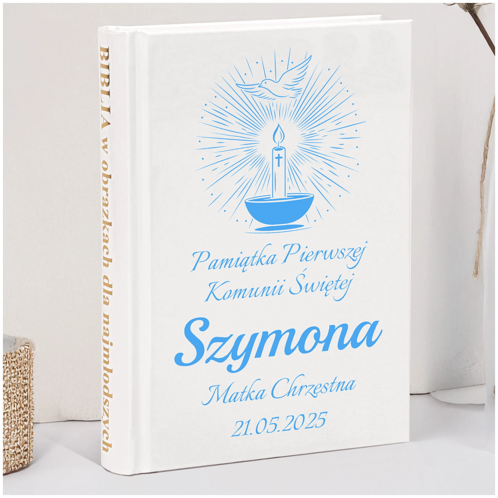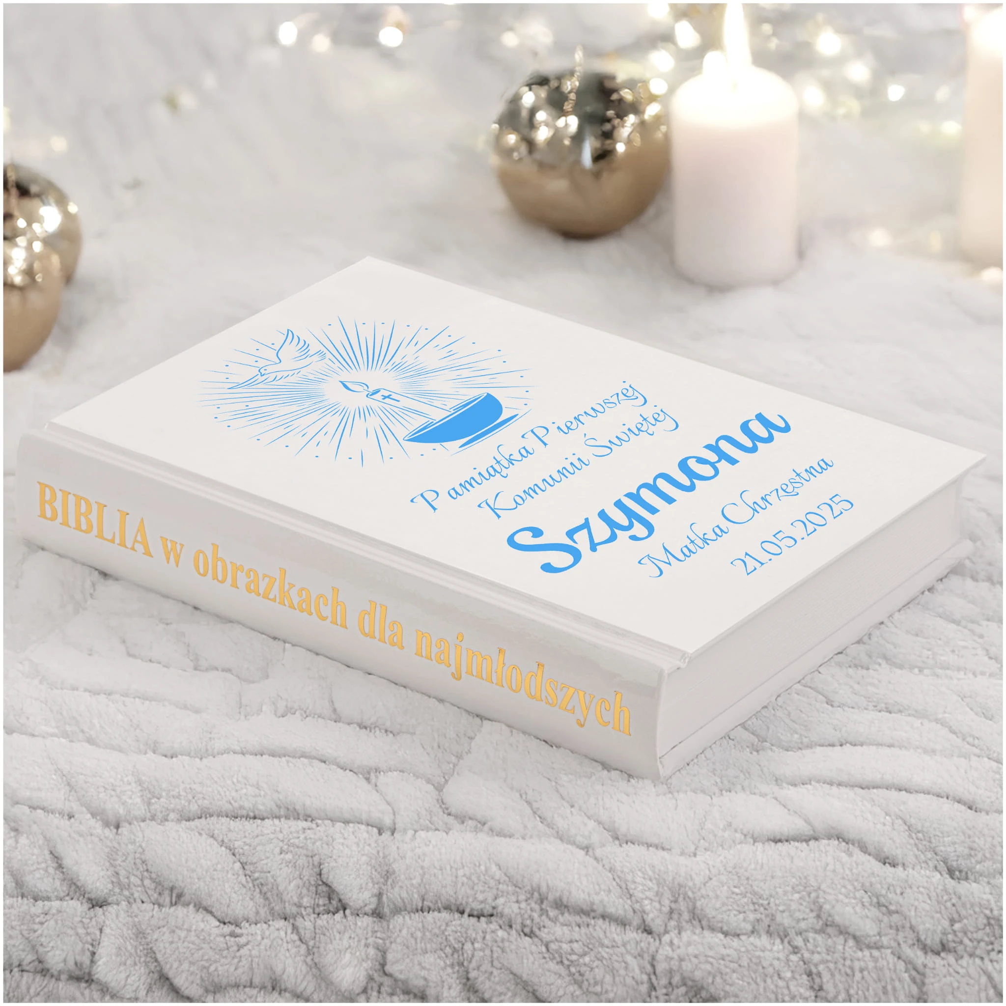 PAMIĄTKA PIERWSZEJ KOMUNII ŚWIĘTEJ BIBLIA NA KOMUNIE PREZENT - NIEODPŁATNA PERSONALIZACJA