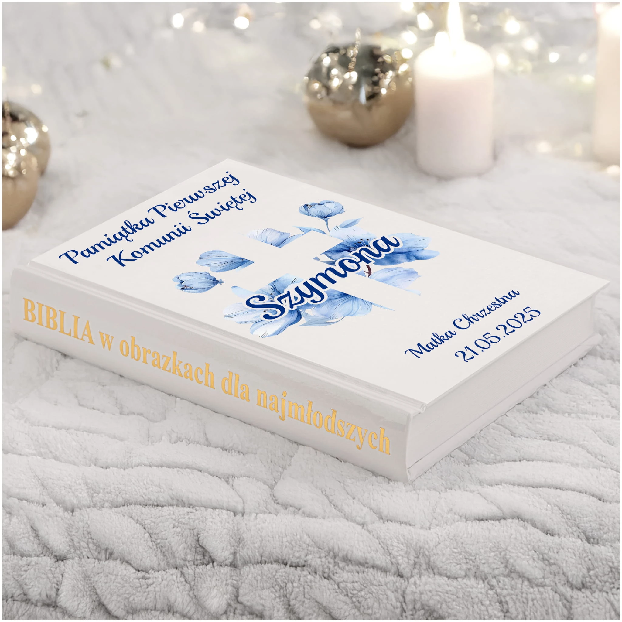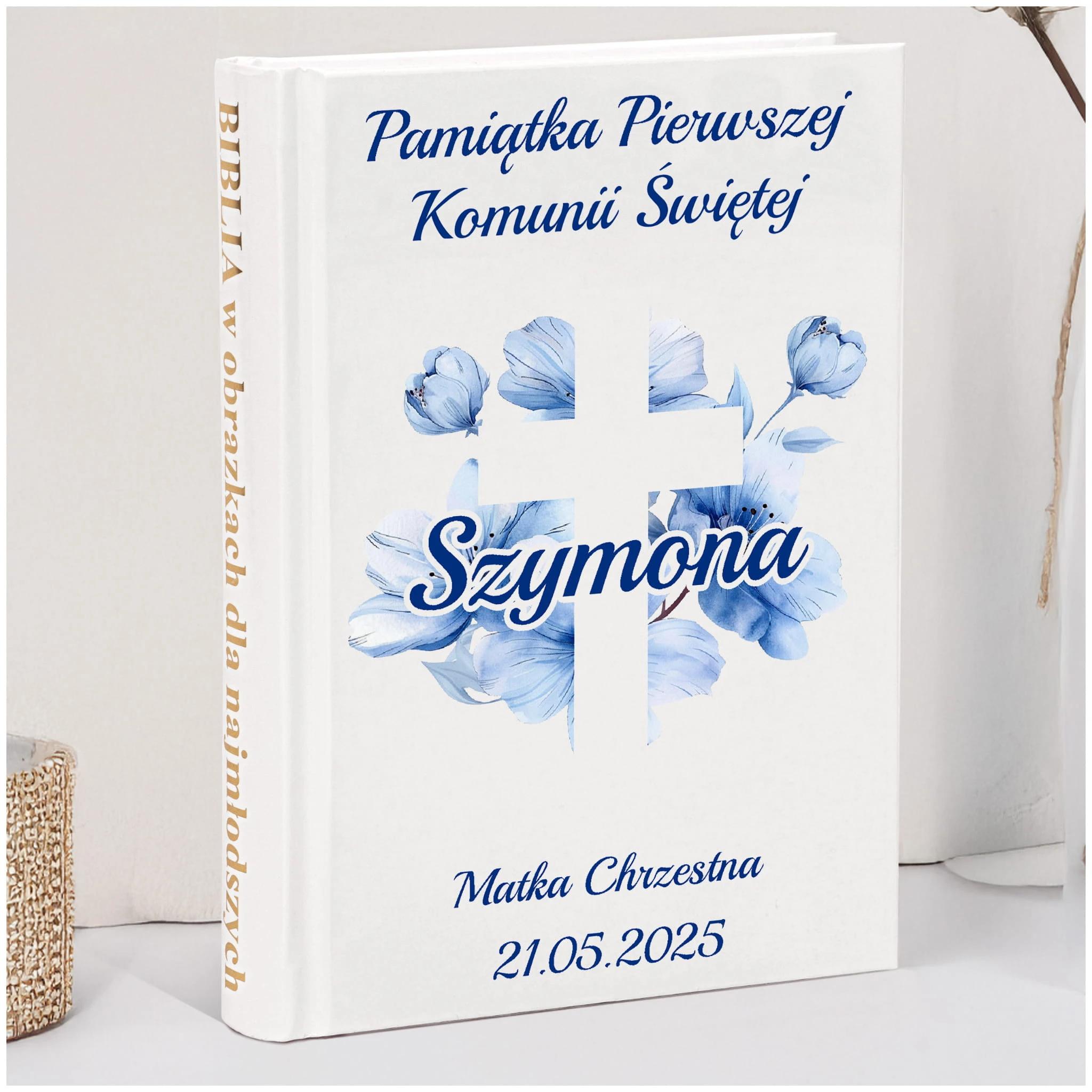 PAMIĄTKA PIERWSZEJ KOMUNII ŚWIĘTEJ BIBLIA NA KOMUNIE PREZENT - NIEODPŁATNA PERSONALIZACJA