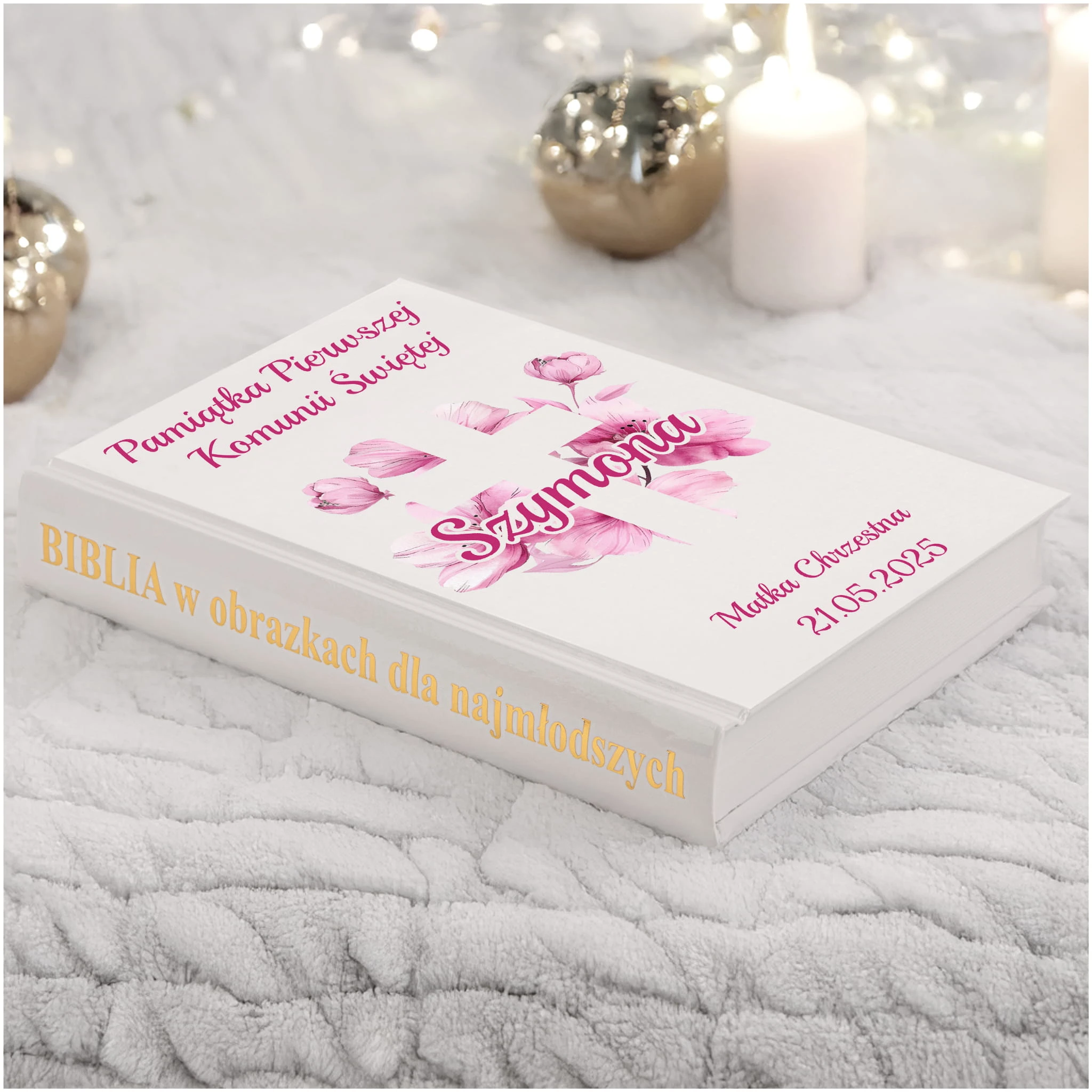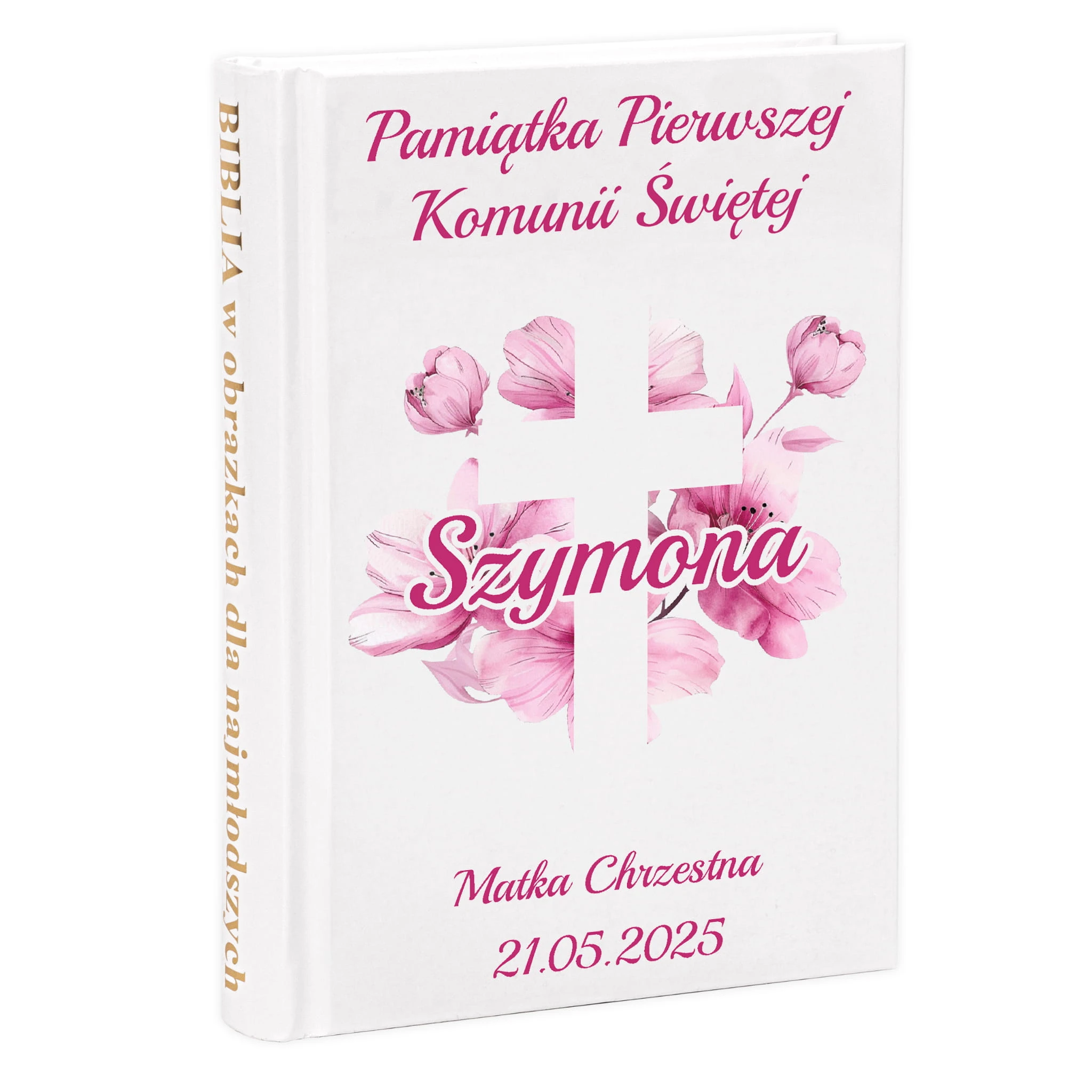 PAMIĄTKA PIERWSZEJ KOMUNII ŚWIĘTEJ BIBLIA NA KOMUNIE PREZENT - NIEODPŁATNA PERSONALIZACJA
