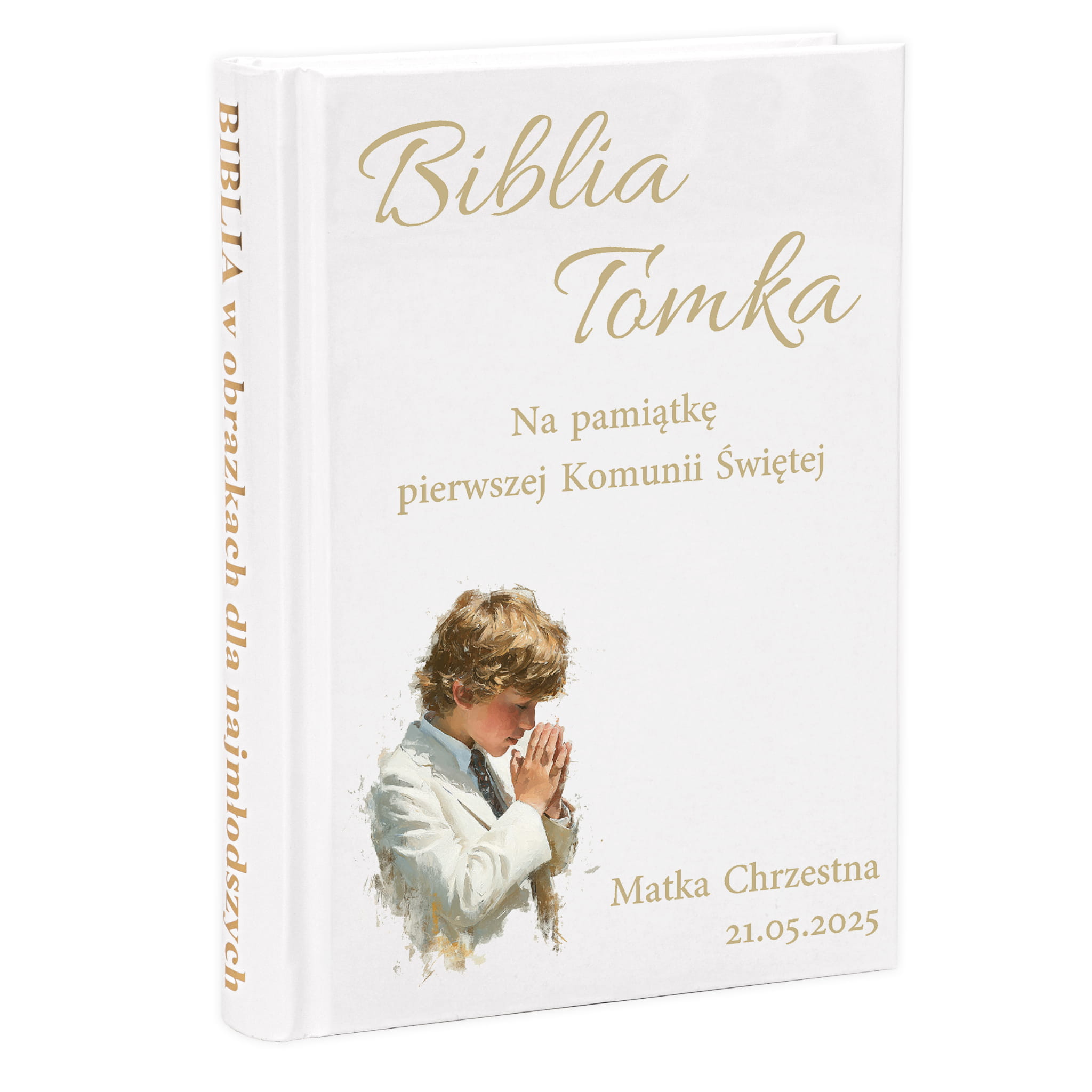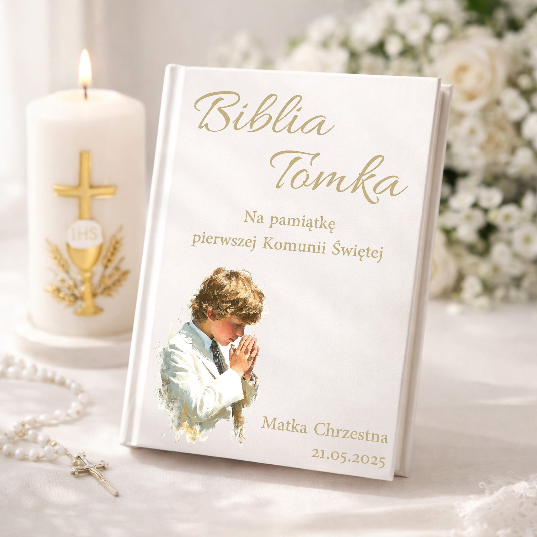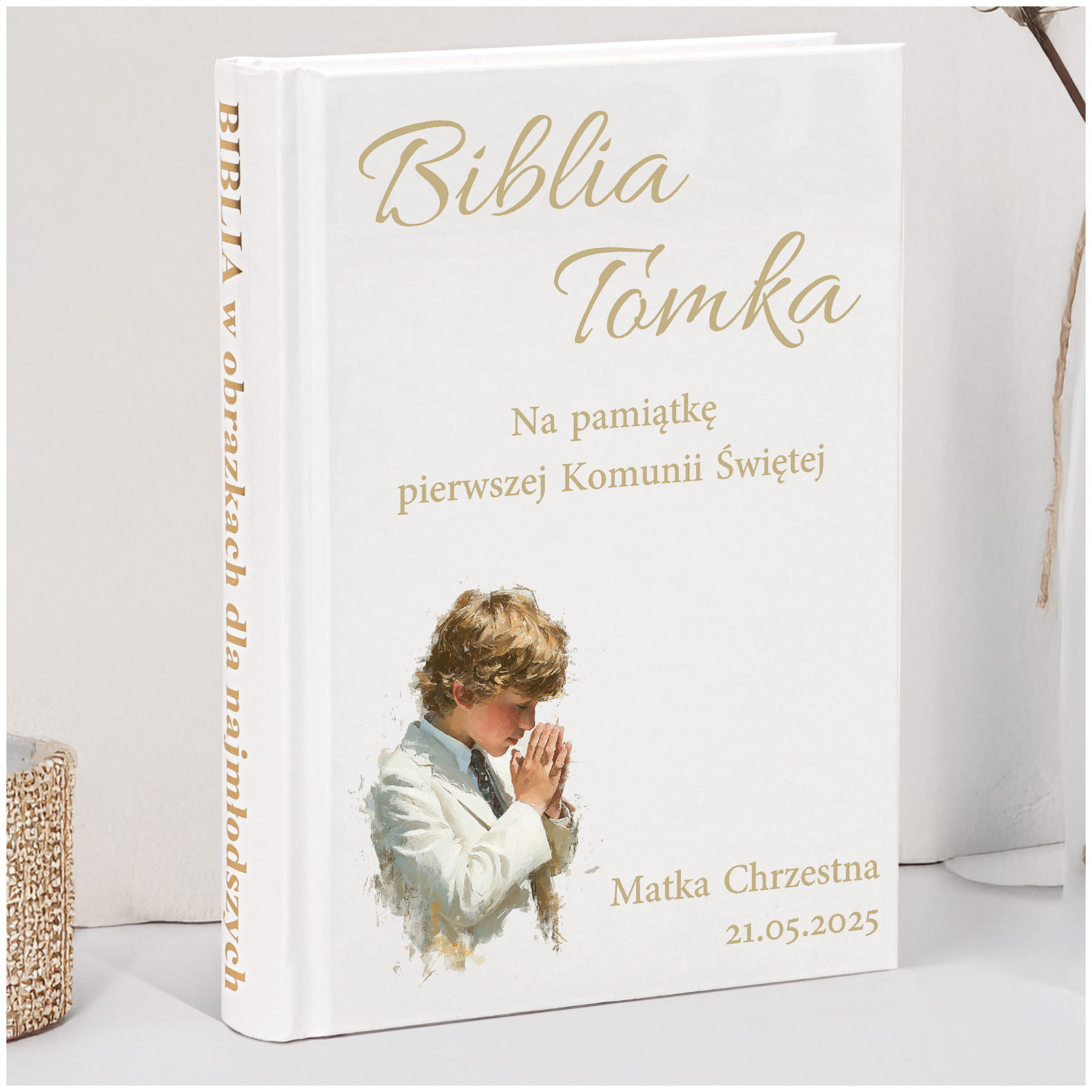 PAMIĄTKA PIERWSZEJ KOMUNII ŚWIĘTEJ BIBLIA NA KOMUNIE PREZENT - NIEODPŁATNA PERSONALIZACJA