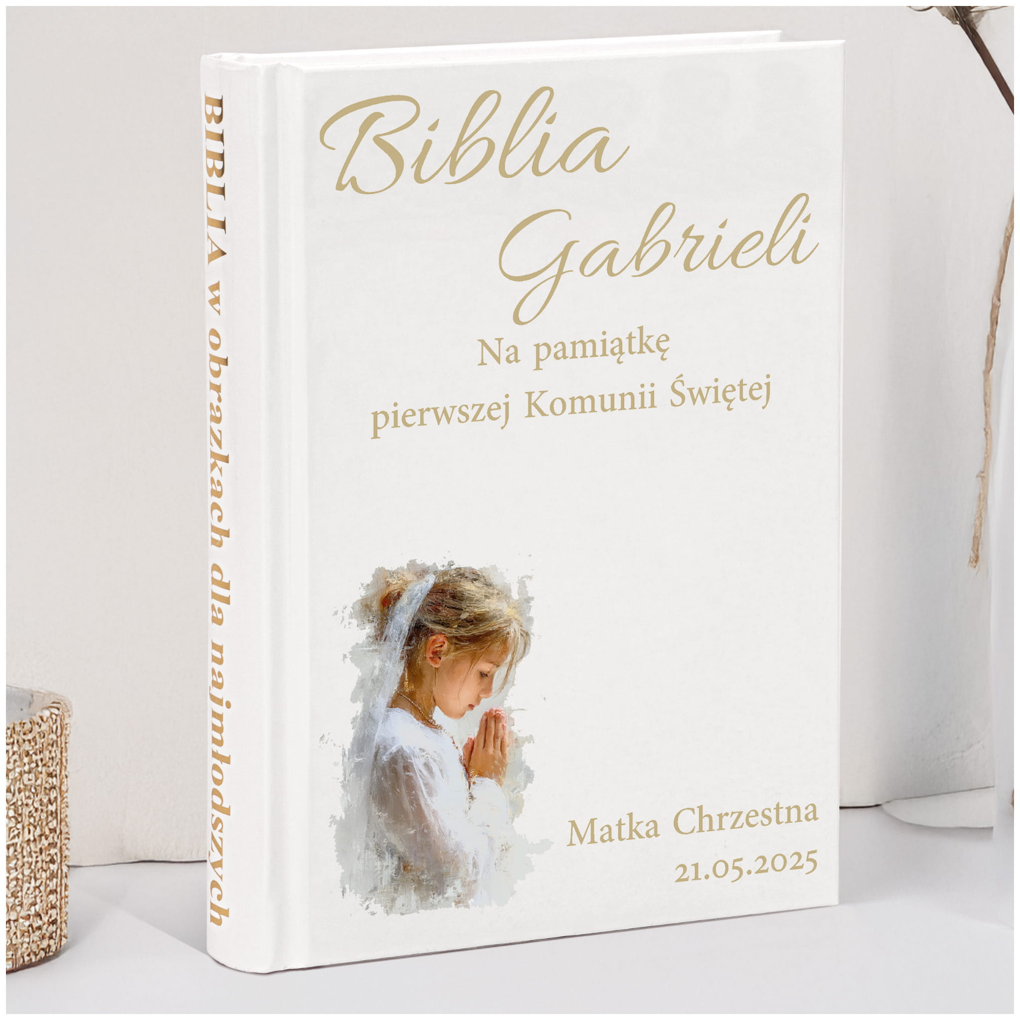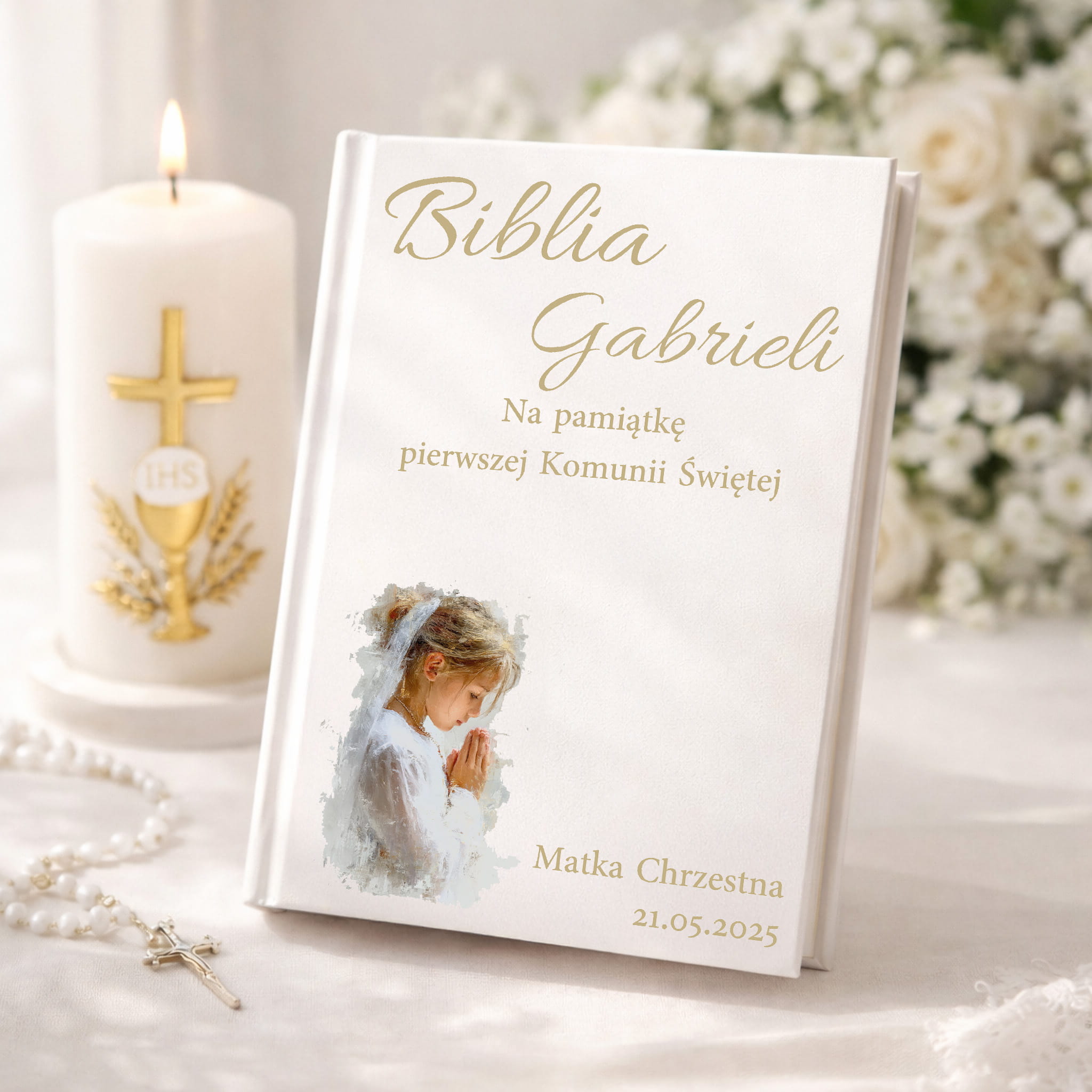 PAMIĄTKA PIERWSZEJ KOMUNII ŚWIĘTEJ BIBLIA NA KOMUNIE PREZENT - NIEODPŁATNA PERSONALIZACJA