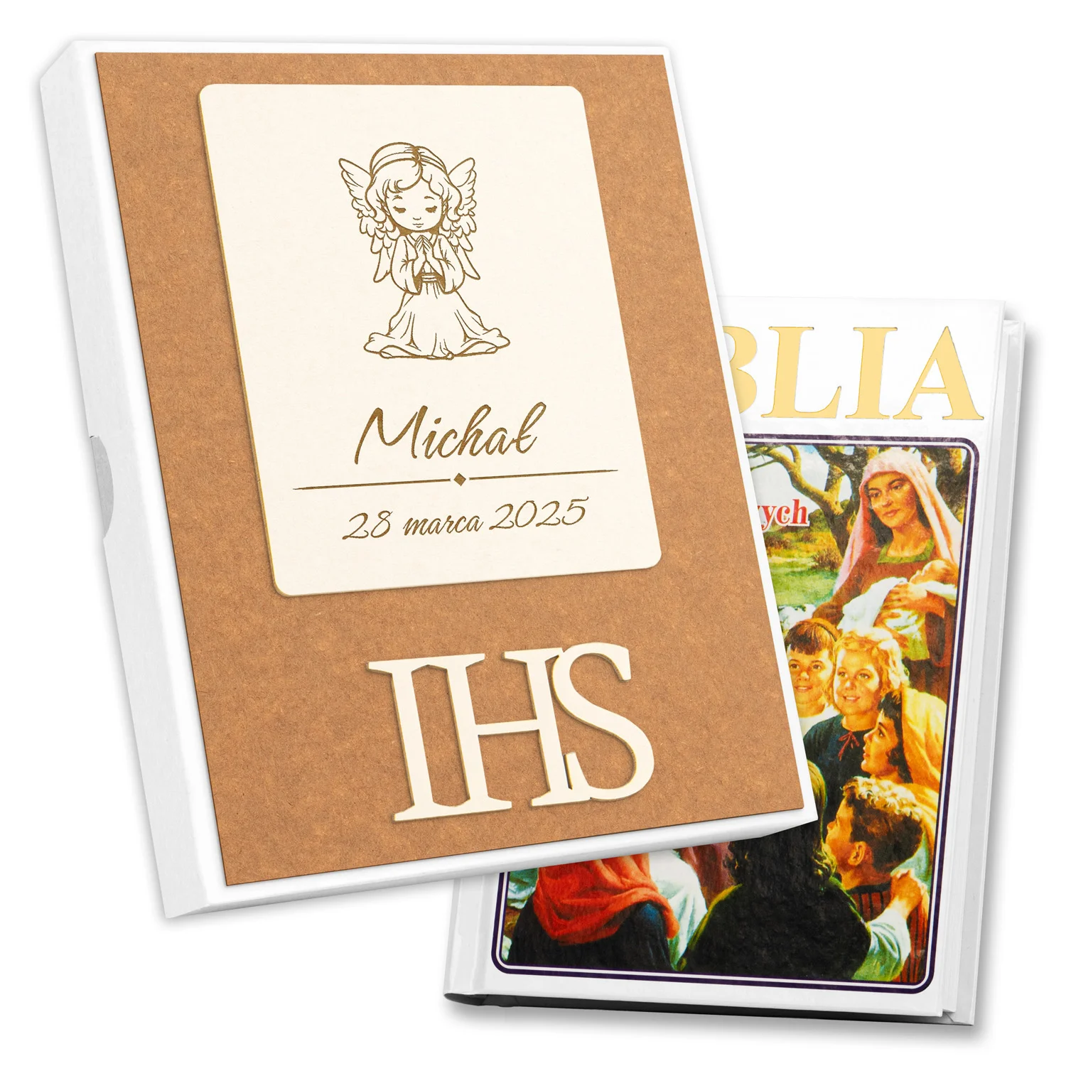 Oferujemy biblię oraz pudełko (gratis) z indywidualnym napisem. To upominek, który zostanie w pamięci na całe życie a sama szkatułka, dzięki estetycznemu wykonaniu, będzie stanowiła piękną ozdobę na długie lata.