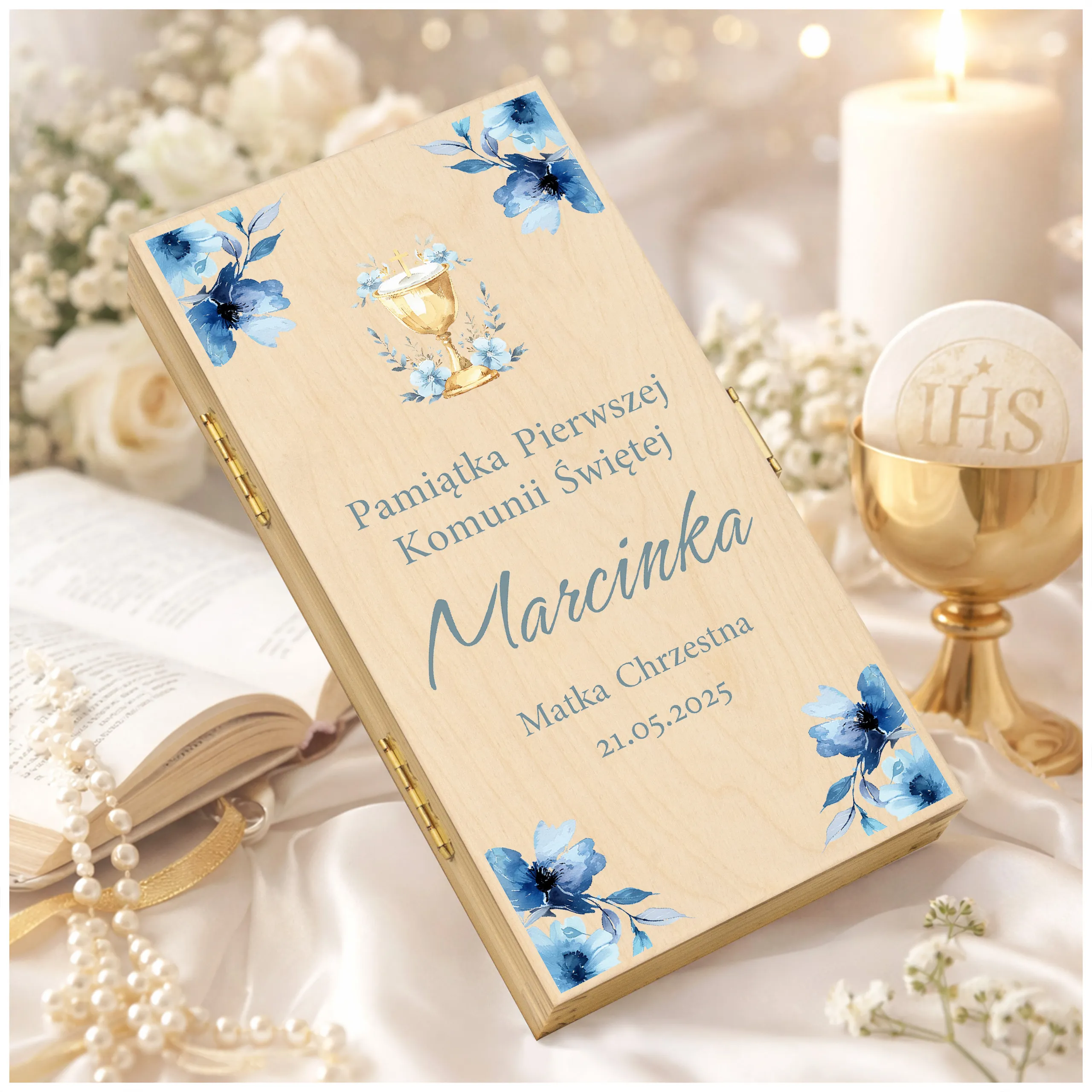PAMIĄTKA PIERWSZEJ KOMUNII ŚWIĘTEJ - Pudełko na pieniądze na komunię, subtelna pamiątka na lata!