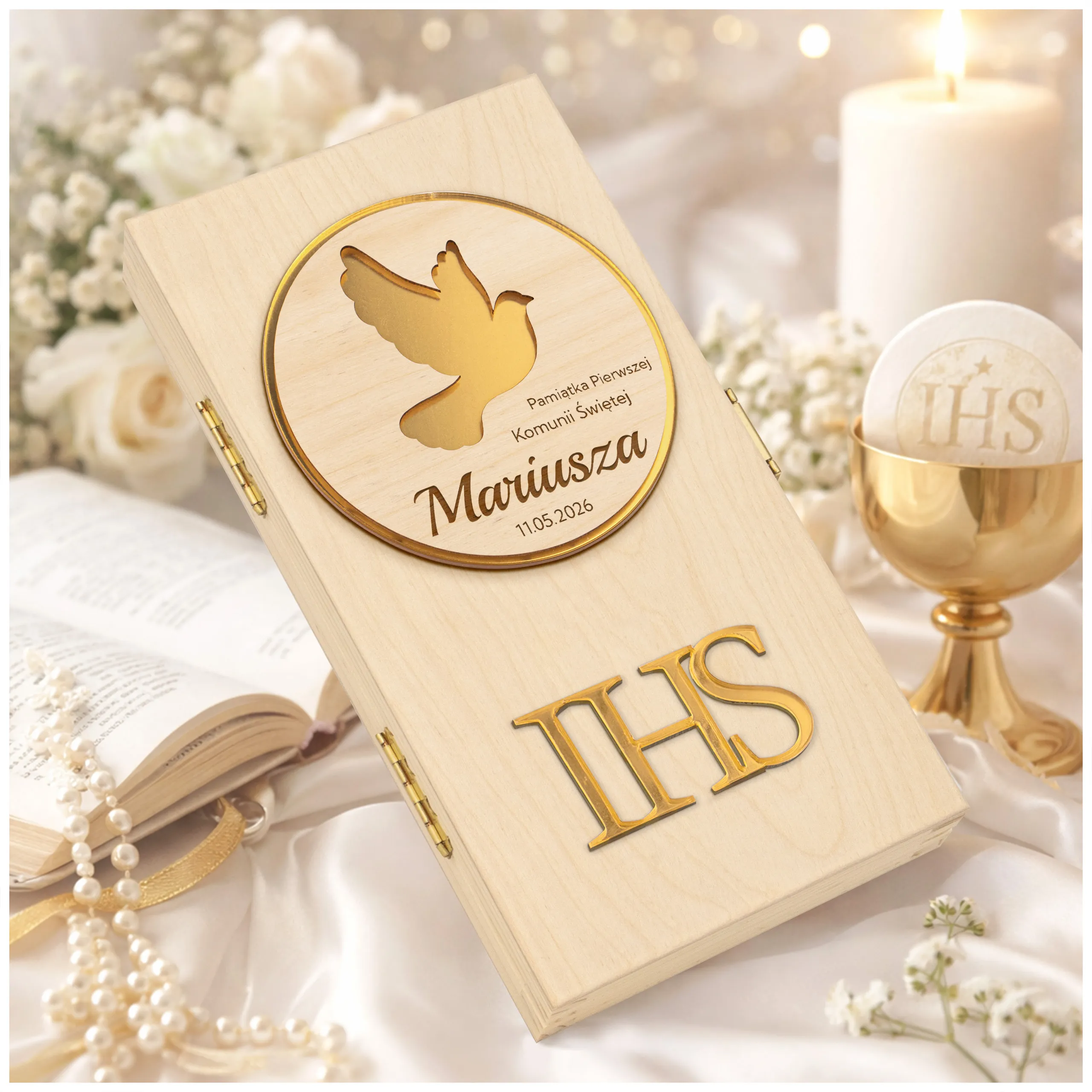 PAMIĄTKA PIERWSZEJ KOMUNII ŚWIĘTEJ - Pudełko na pieniądze na komunię, subtelna pamiątka na lata!