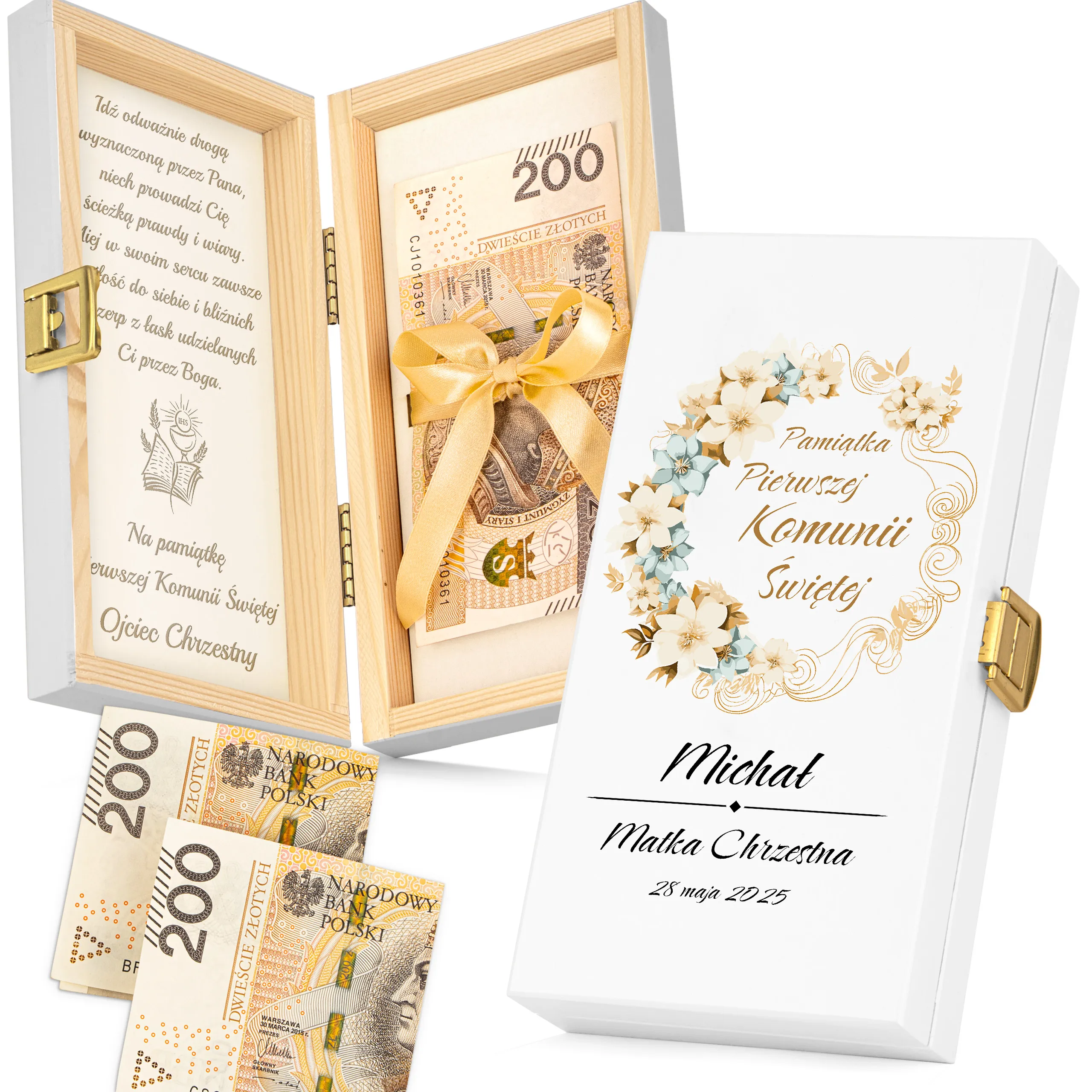Szukasz eleganckiego i trwałego sposobu na wręczenie pieniędzy z okazji Pierwszej Komunii Świętej?