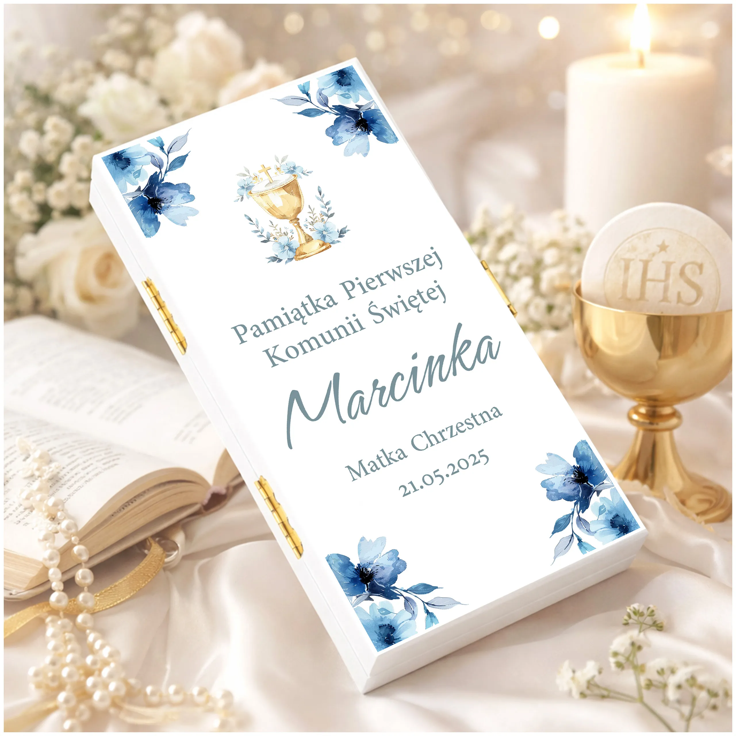 PAMIĄTKA PIERWSZEJ KOMUNII ŚWIĘTEJ - Pudełko na pieniądze na komunię, subtelna pamiątka na lata!