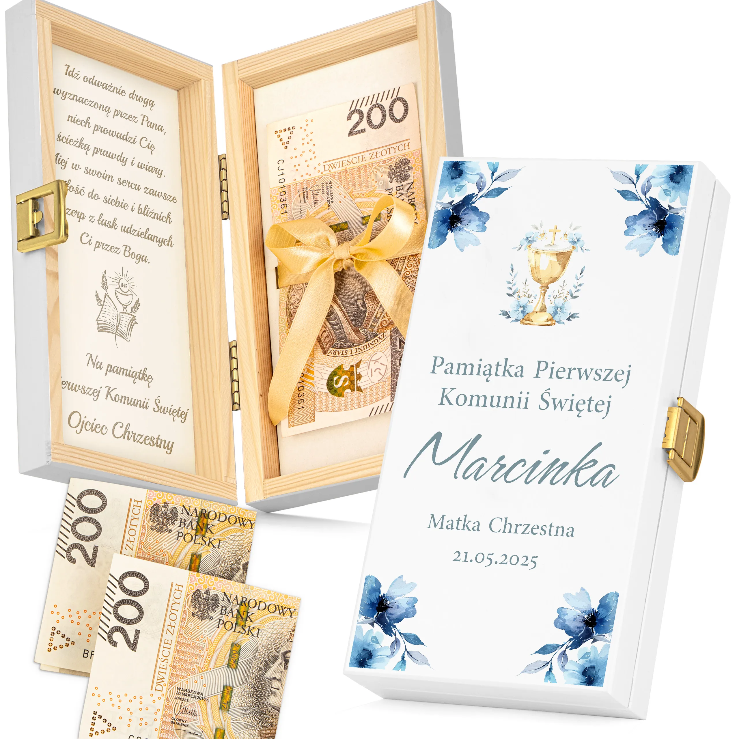 Szukasz eleganckiego i trwałego sposobu na wręczenie pieniędzy z okazji Pierwszej Komunii Świętej?