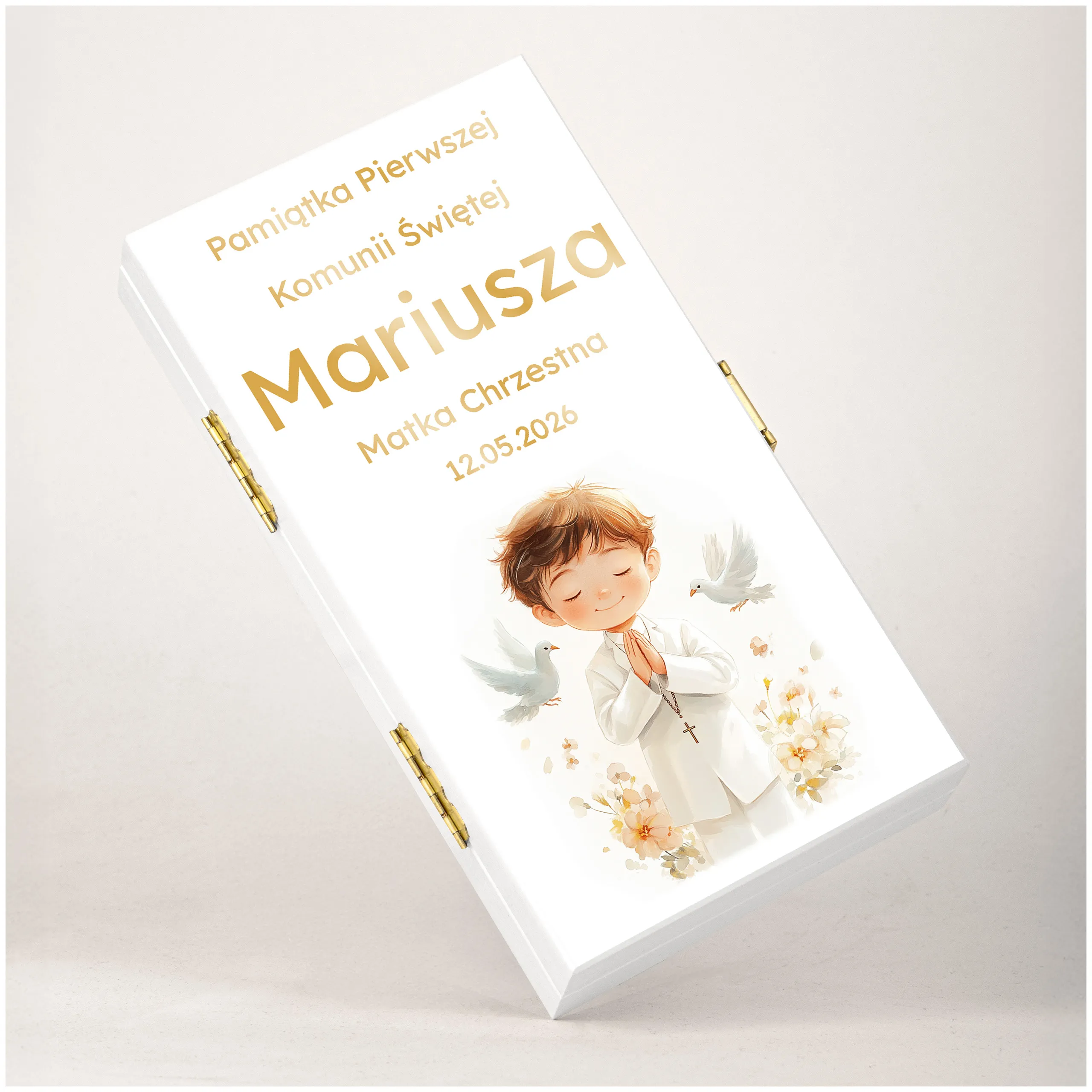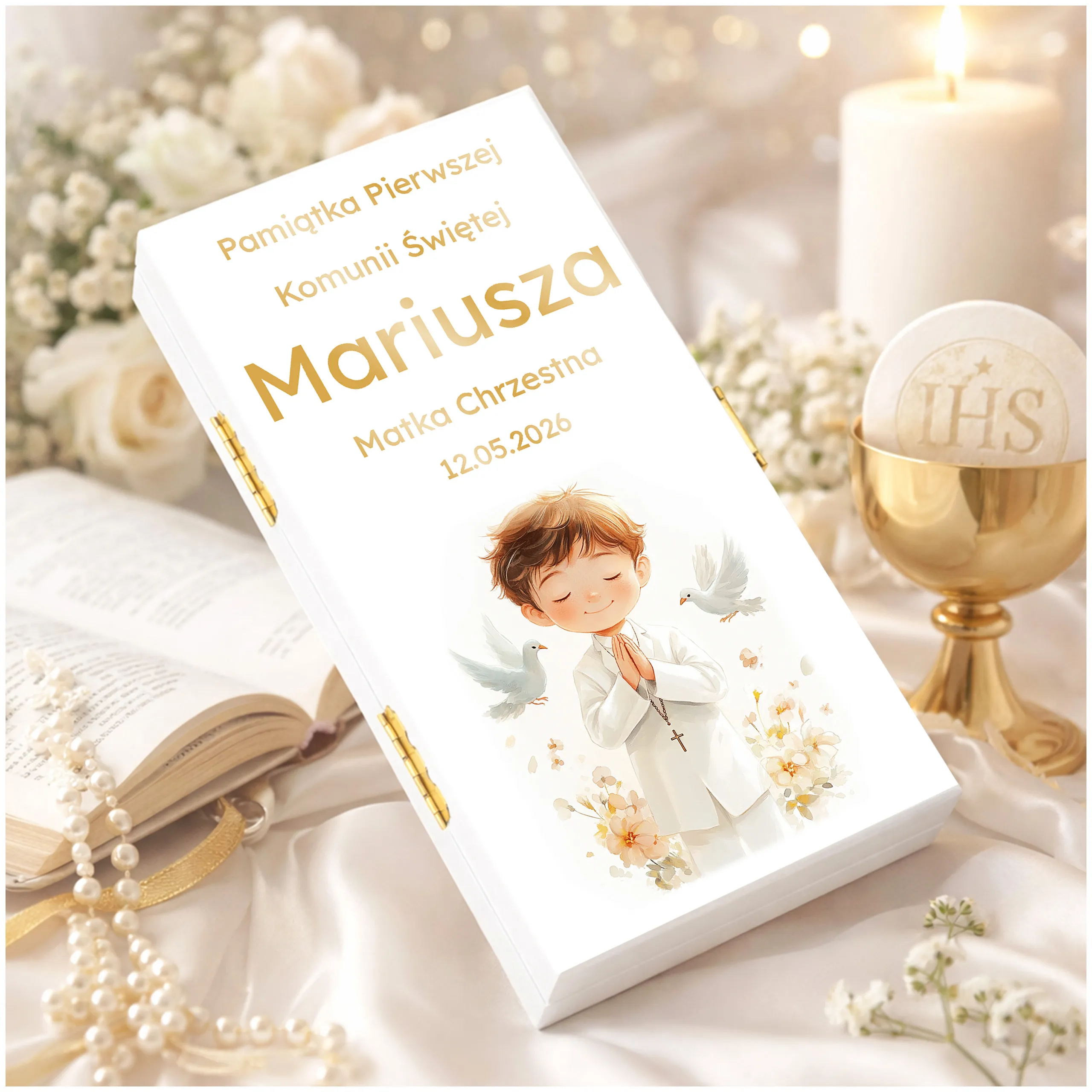 PAMIĄTKA PIERWSZEJ KOMUNII ŚWIĘTEJ - Pudełko na pieniądze na komunię, subtelna pamiątka na lata!