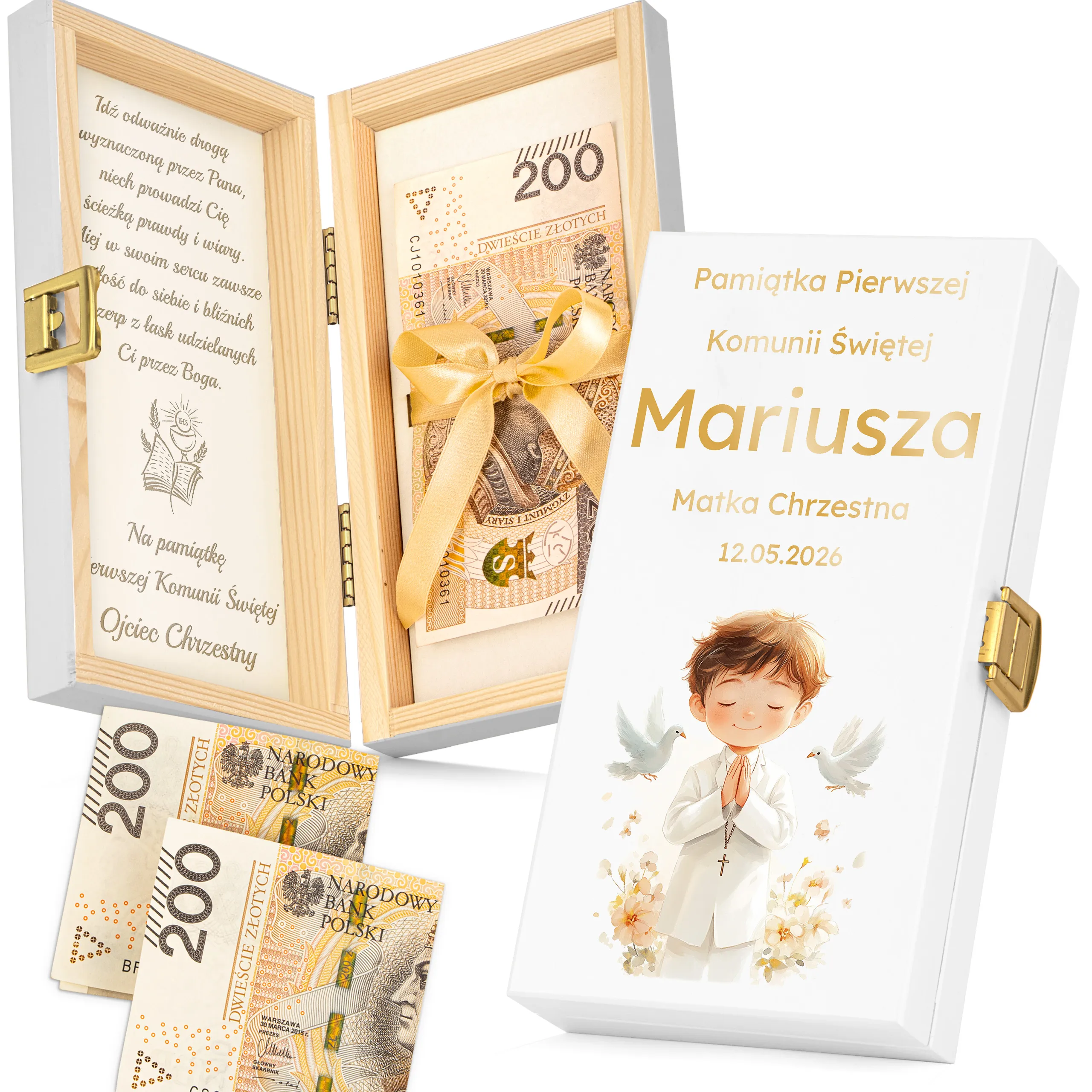 Szukasz eleganckiego i trwałego sposobu na wręczenie pieniędzy z okazji Pierwszej Komunii Świętej?