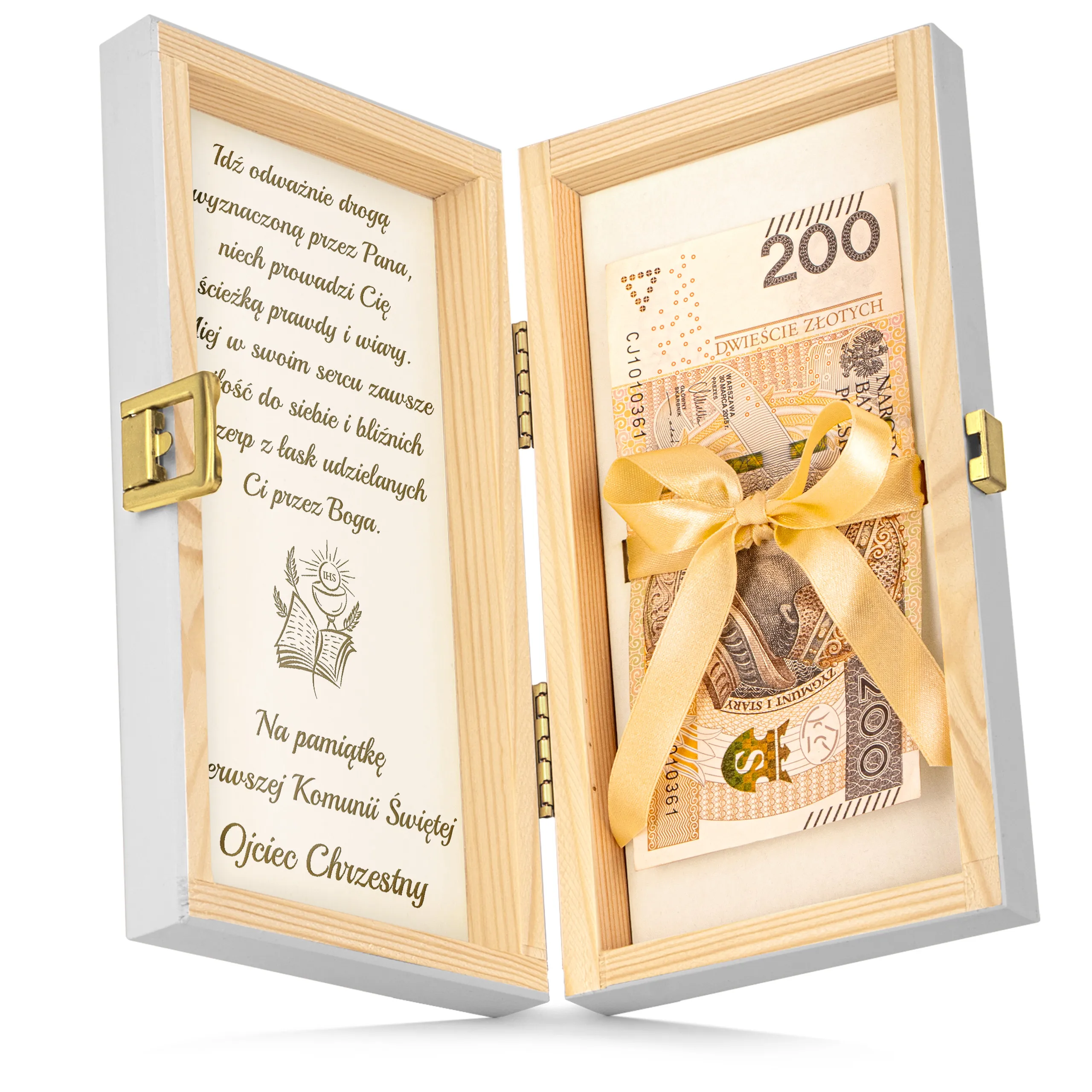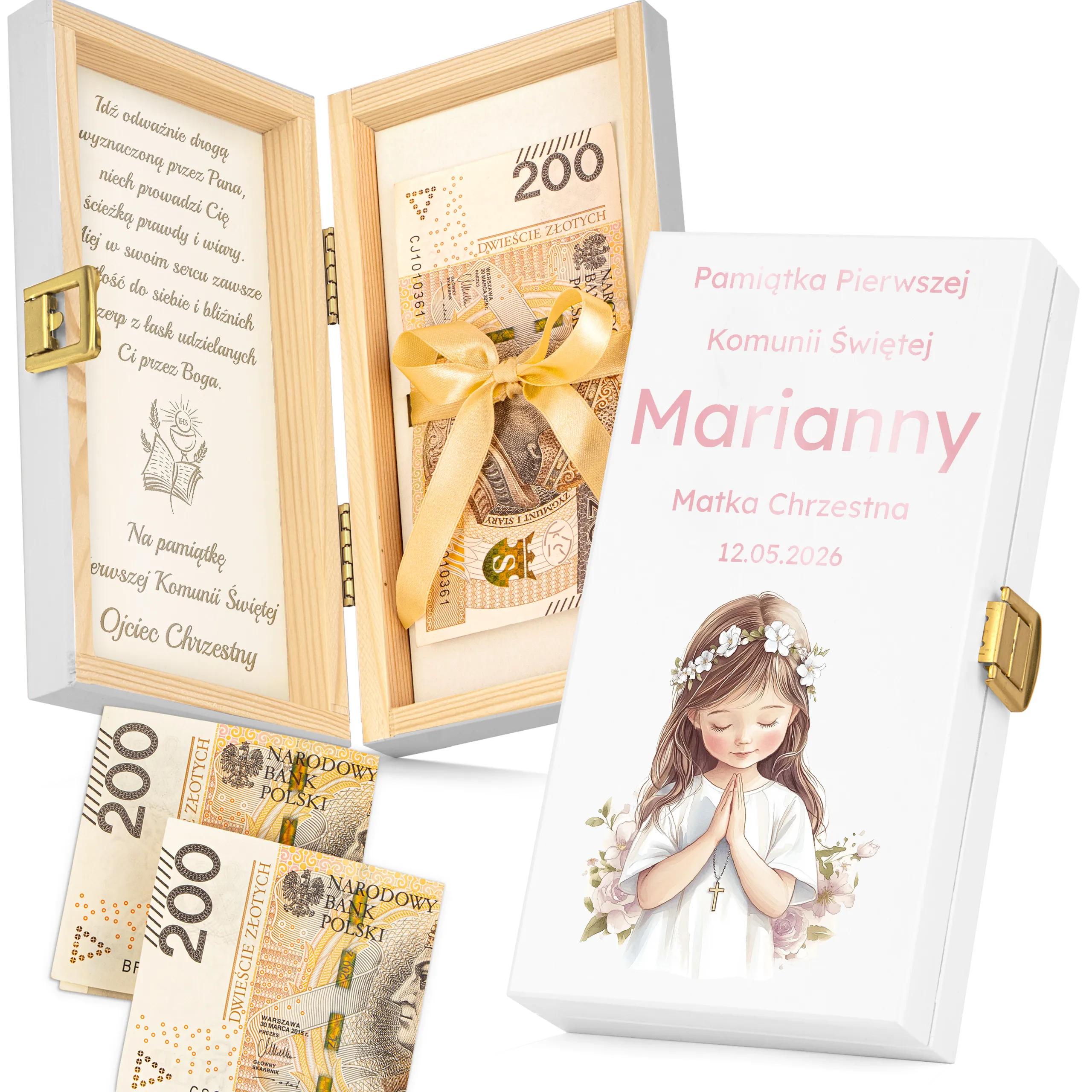 Szukasz eleganckiego i trwałego sposobu na wręczenie pieniędzy z okazji Pierwszej Komunii Świętej?