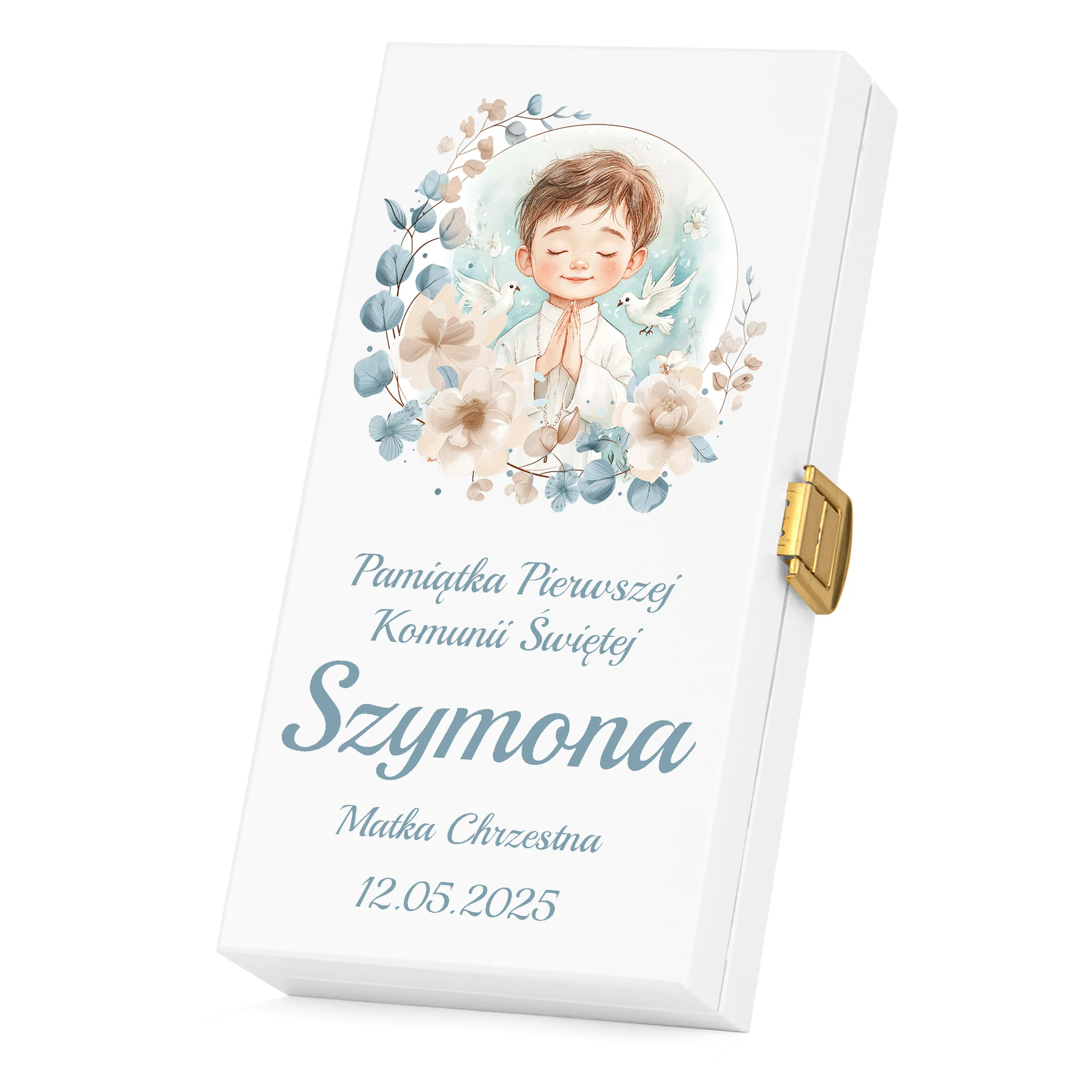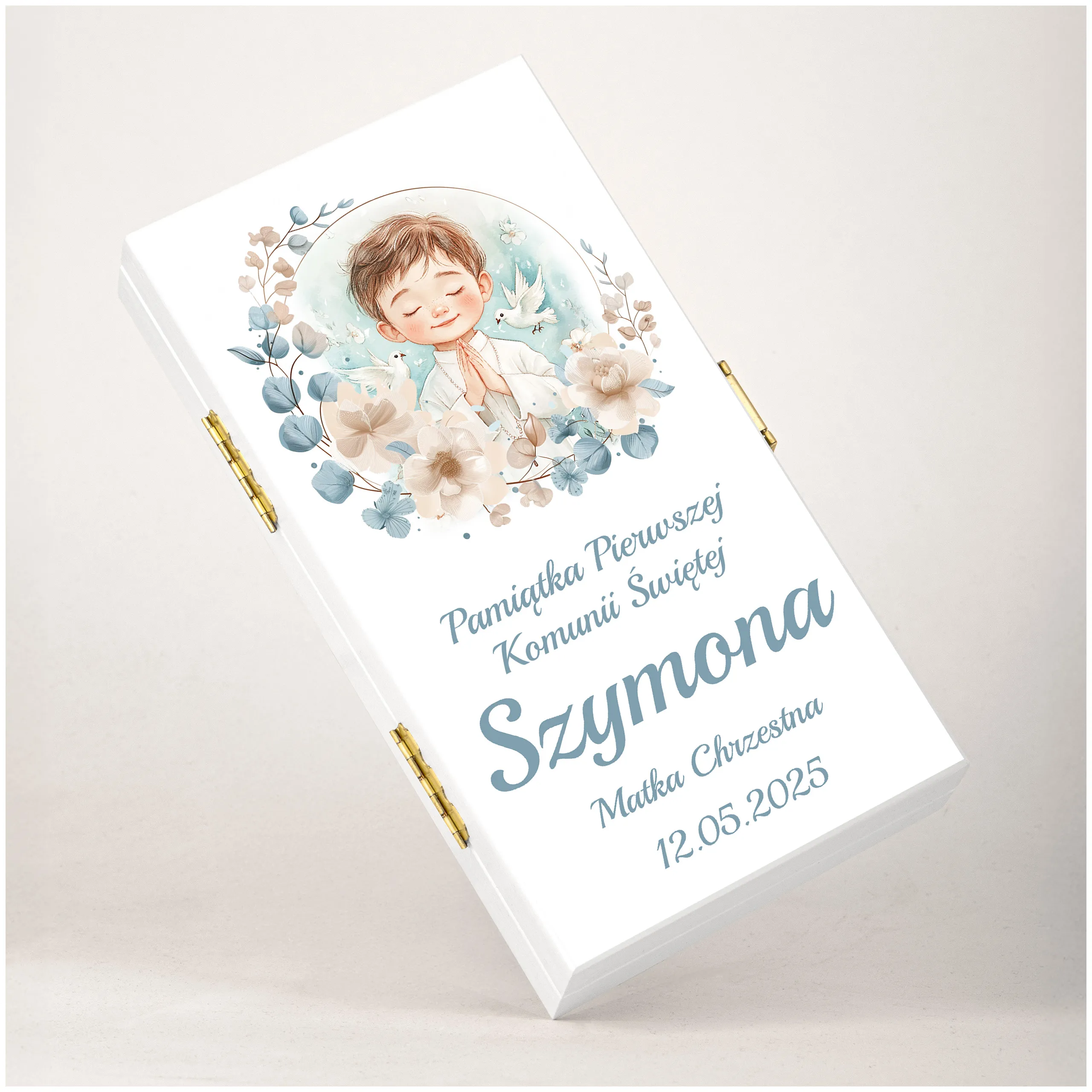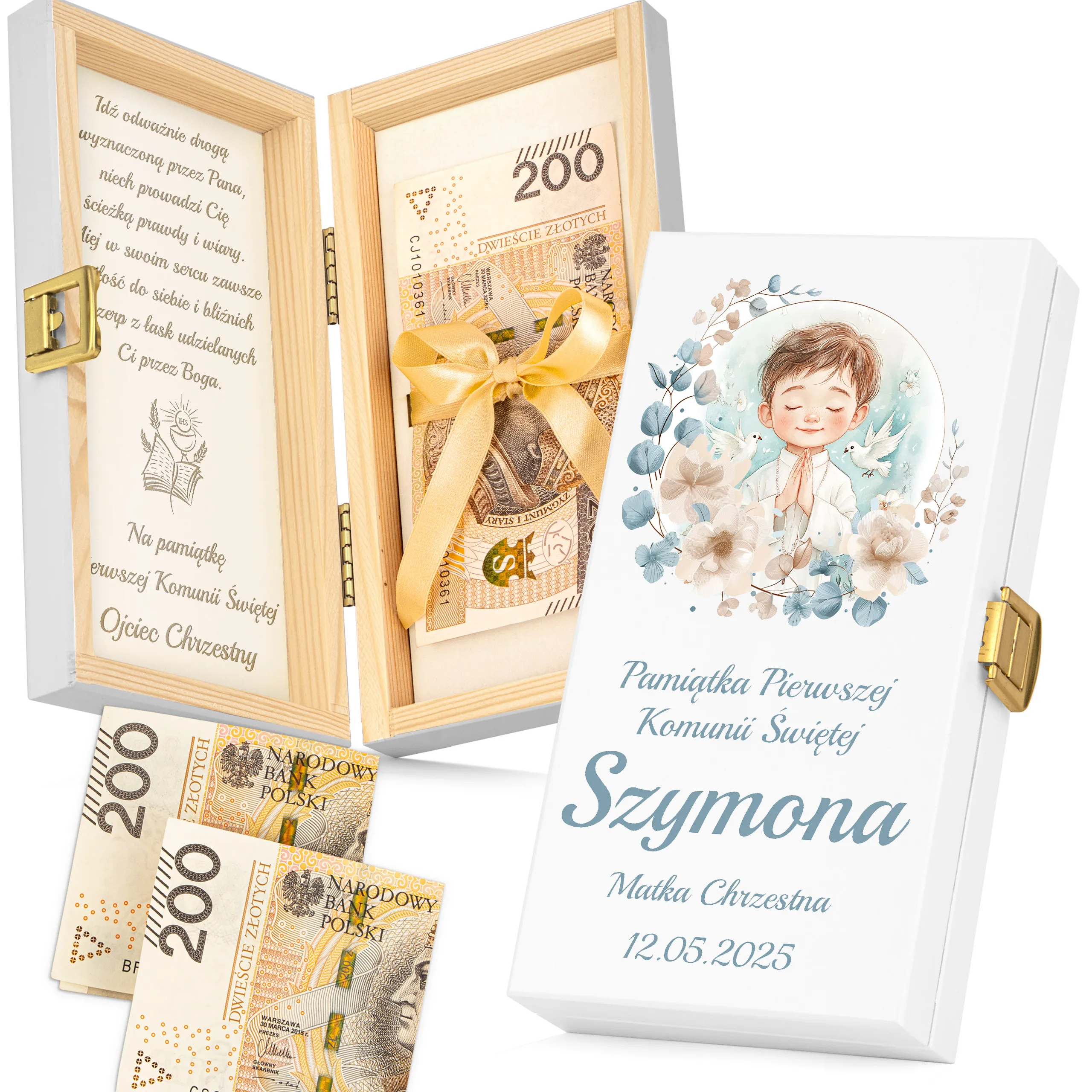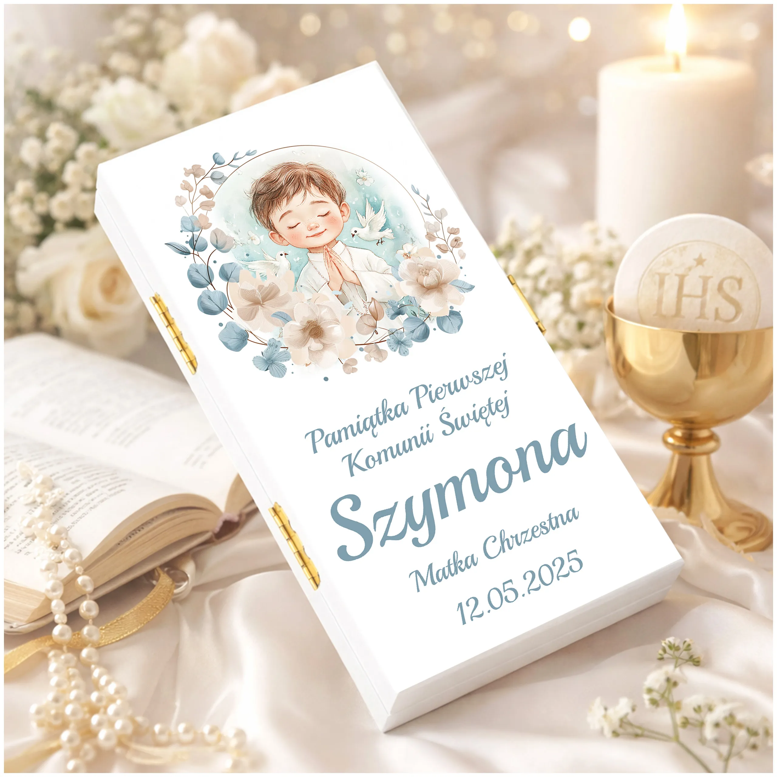 PAMIĄTKA PIERWSZEJ KOMUNII ŚWIĘTEJ - Pudełko na pieniądze na komunię, subtelna pamiątka na lata!