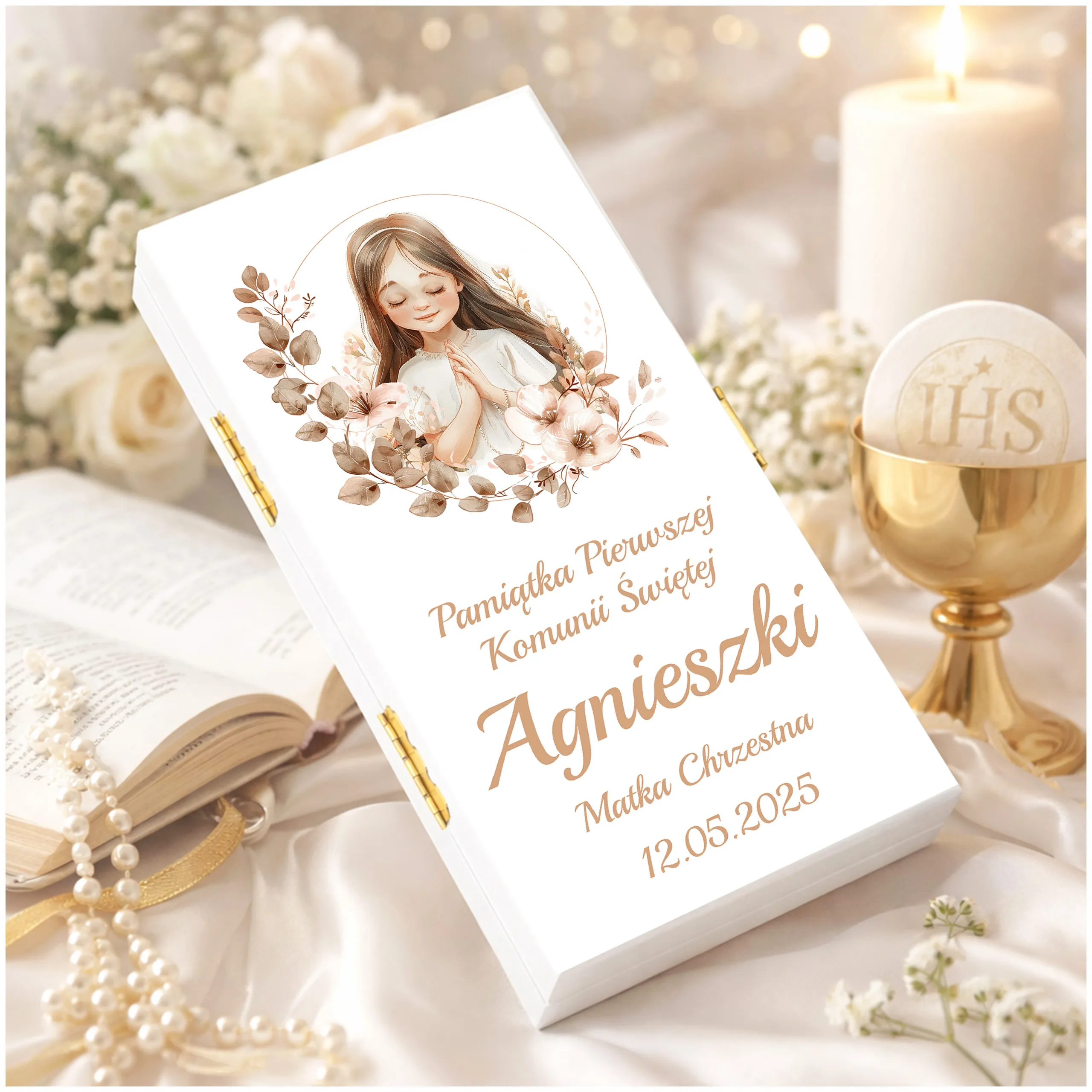 PAMIĄTKA PIERWSZEJ KOMUNII ŚWIĘTEJ - Pudełko na pieniądze na komunię, subtelna pamiątka na lata!