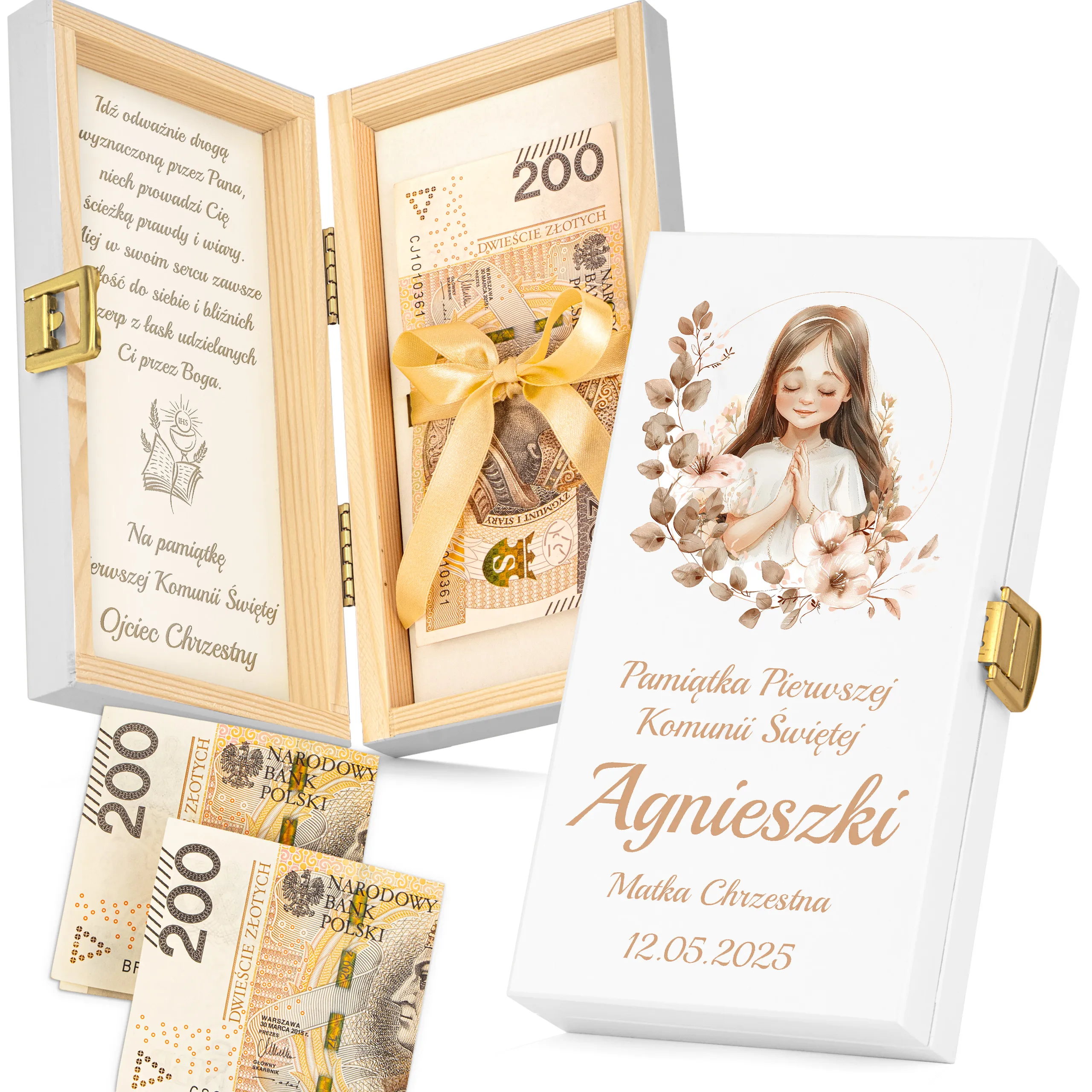 Szukasz eleganckiego i trwałego sposobu na wręczenie pieniędzy z okazji Pierwszej Komunii Świętej?