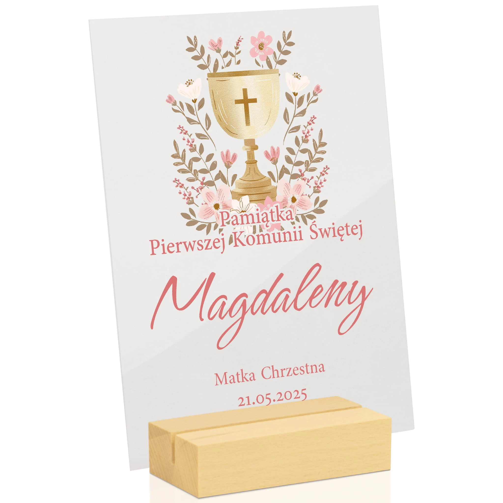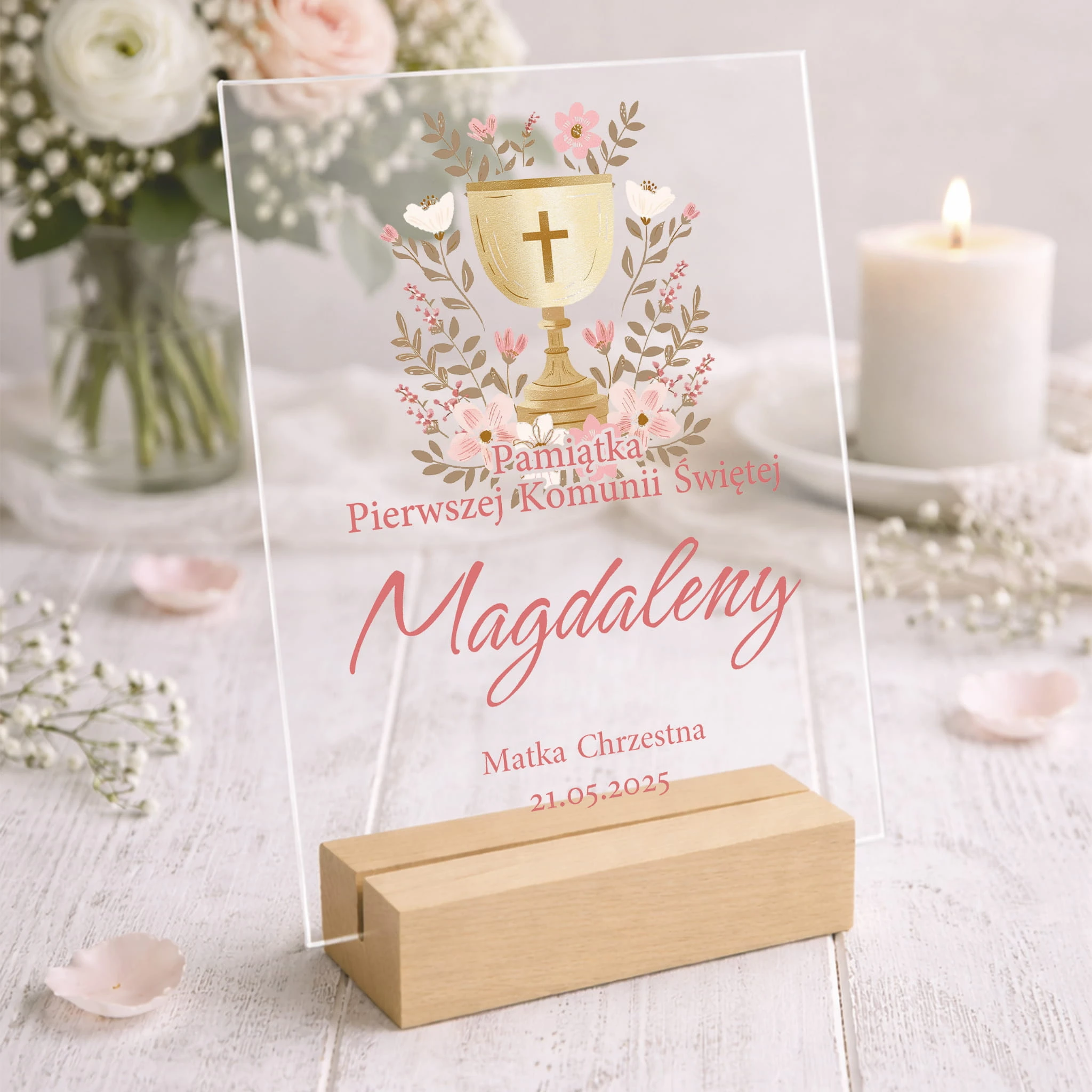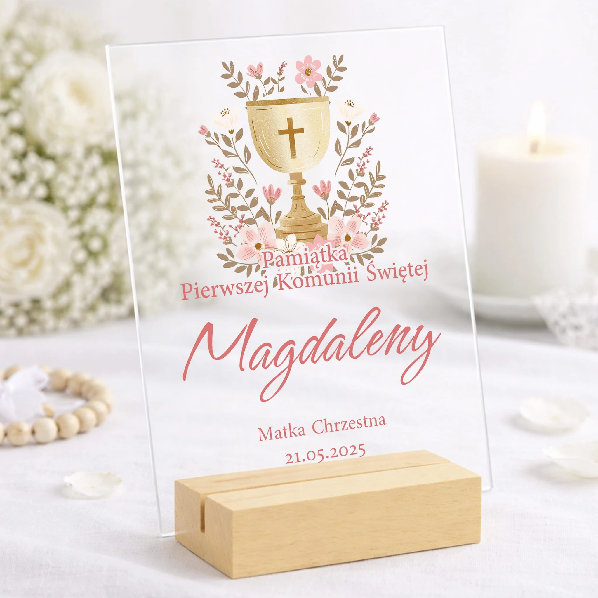 Szukasz prezentu komunijnego, który nie będzie przypadkowy ani banalny? Statuetka wykonana z przezroczystego akrylu to propozycja łącząca estetykę z symbolicznym znaczeniem - odpowiednia zarówno dla dziecka, jak i jako elegancki gest od chrzestnych czy bliskiej rodziny.