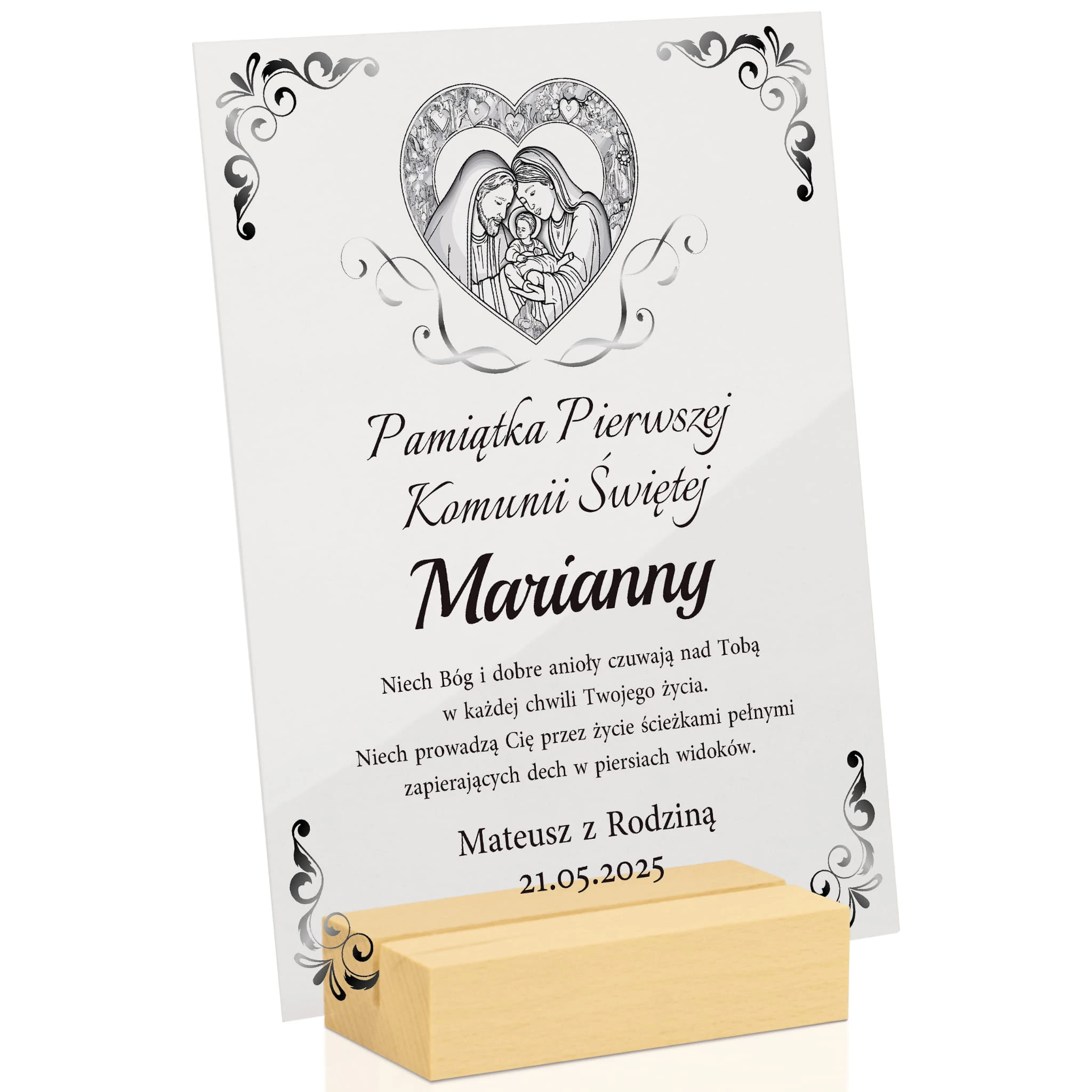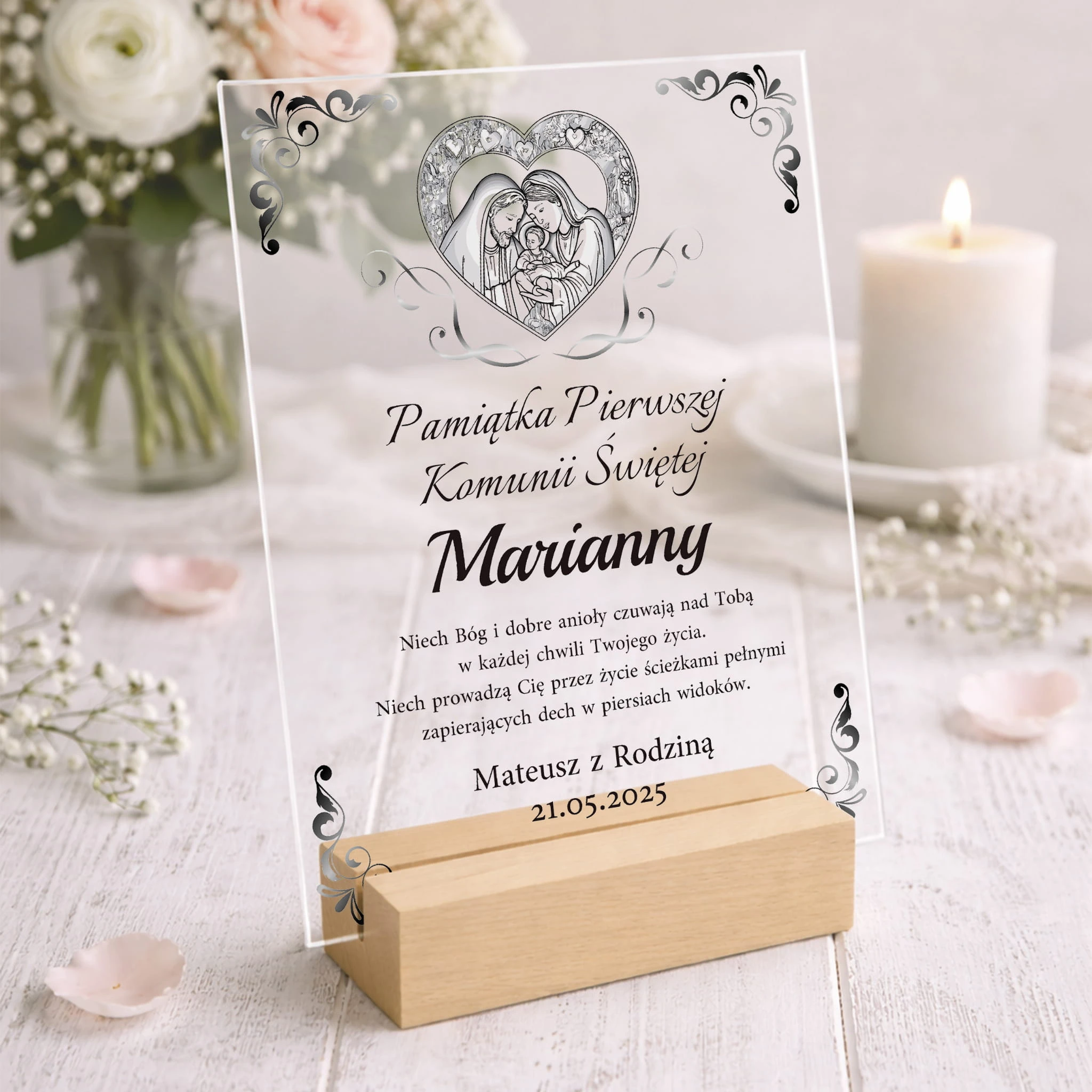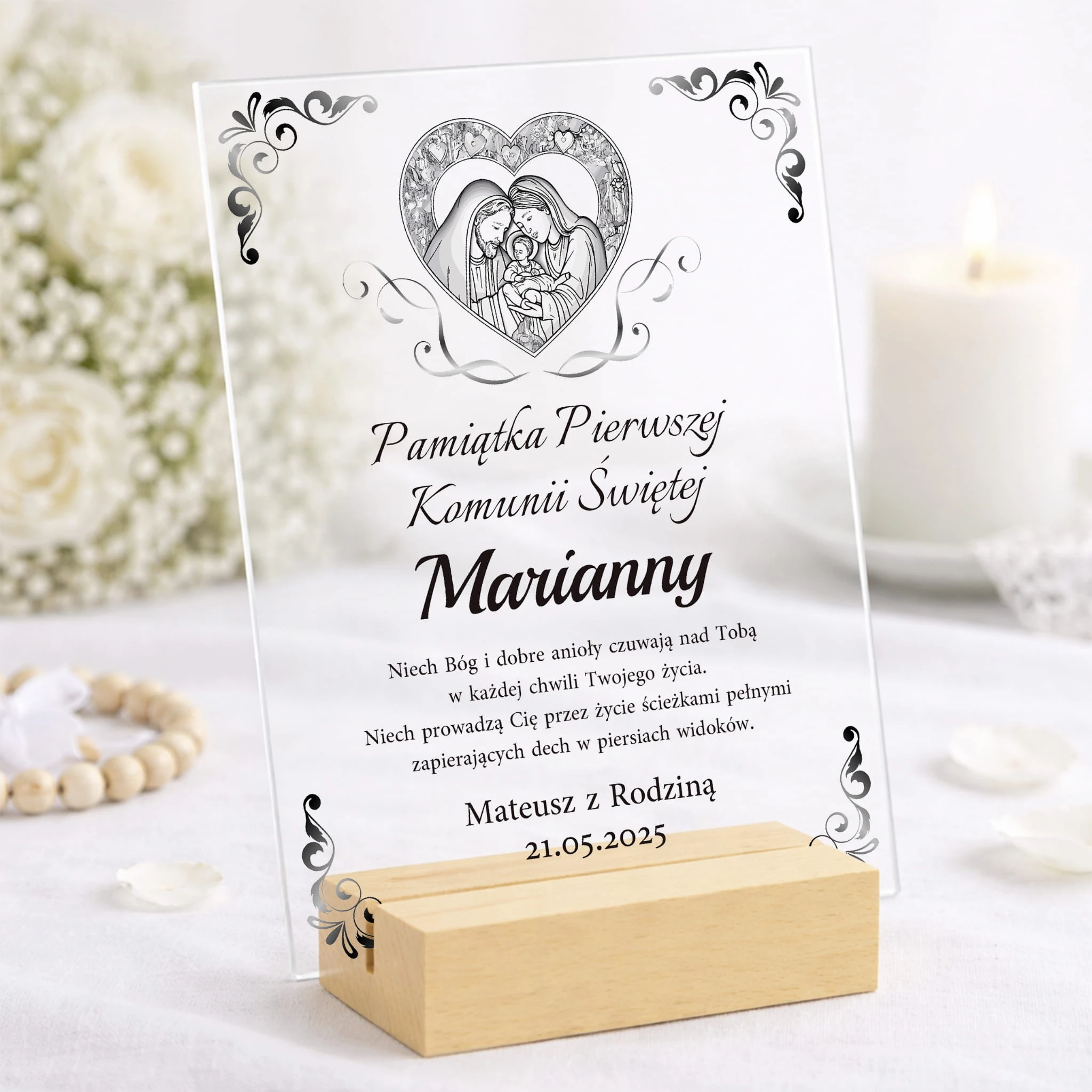 Szukasz prezentu komunijnego, który nie będzie przypadkowy ani banalny? Statuetka wykonana z przezroczystego akrylu to propozycja łącząca estetykę z symbolicznym znaczeniem - odpowiednia zarówno dla dziecka, jak i jako elegancki gest od chrzestnych czy bliskiej rodziny.