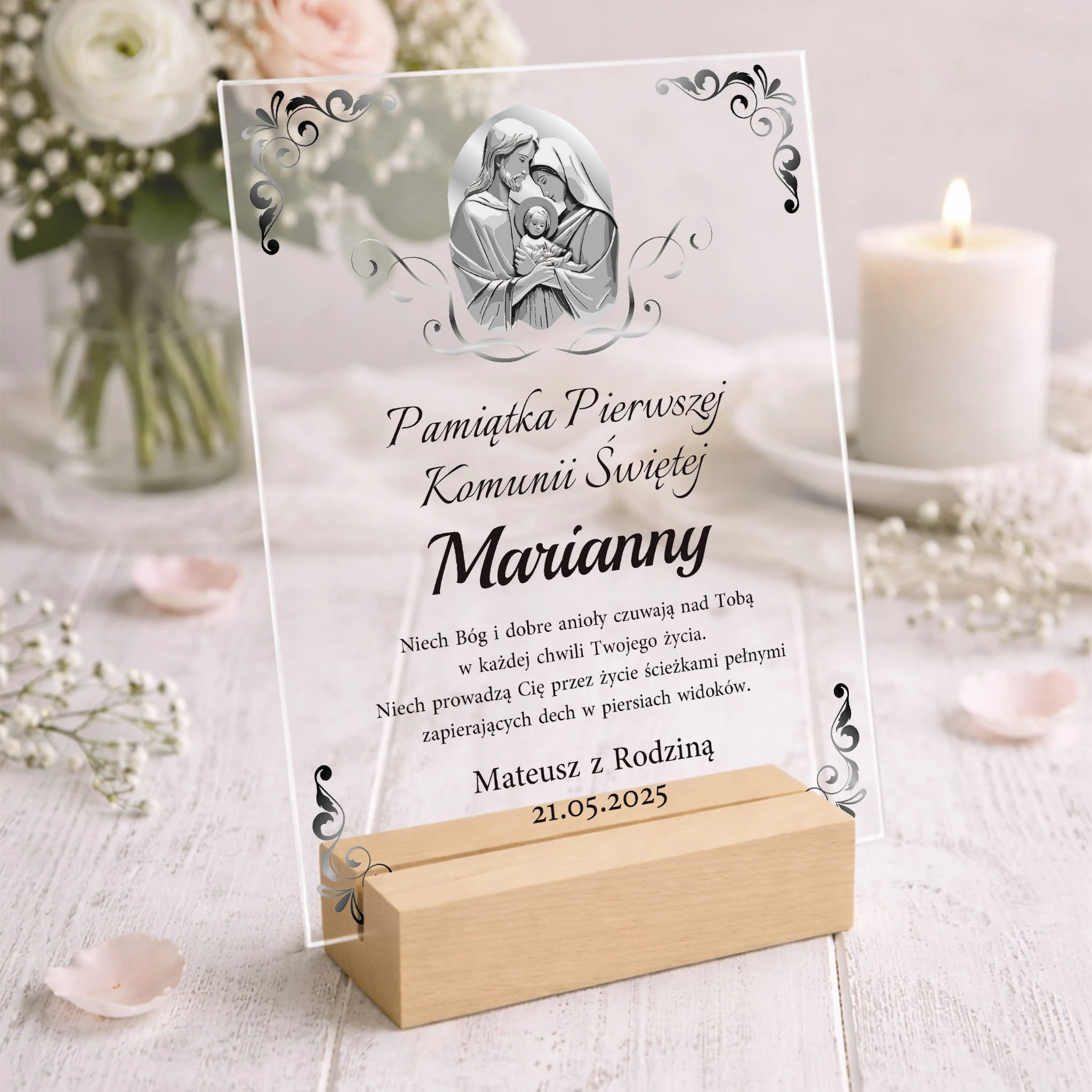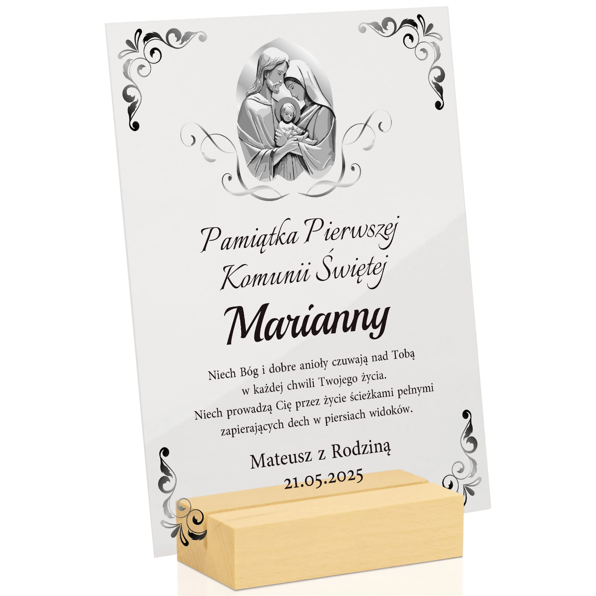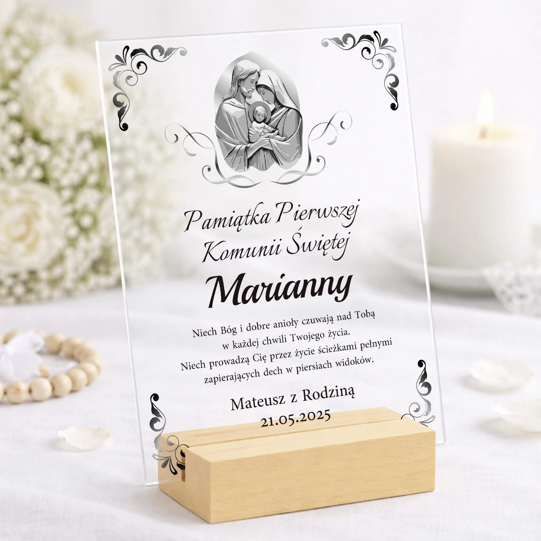 Szukasz prezentu komunijnego, który nie będzie przypadkowy ani banalny? Statuetka wykonana z przezroczystego akrylu to propozycja łącząca estetykę z symbolicznym znaczeniem - odpowiednia zarówno dla dziecka, jak i jako elegancki gest od chrzestnych czy bliskiej rodziny.